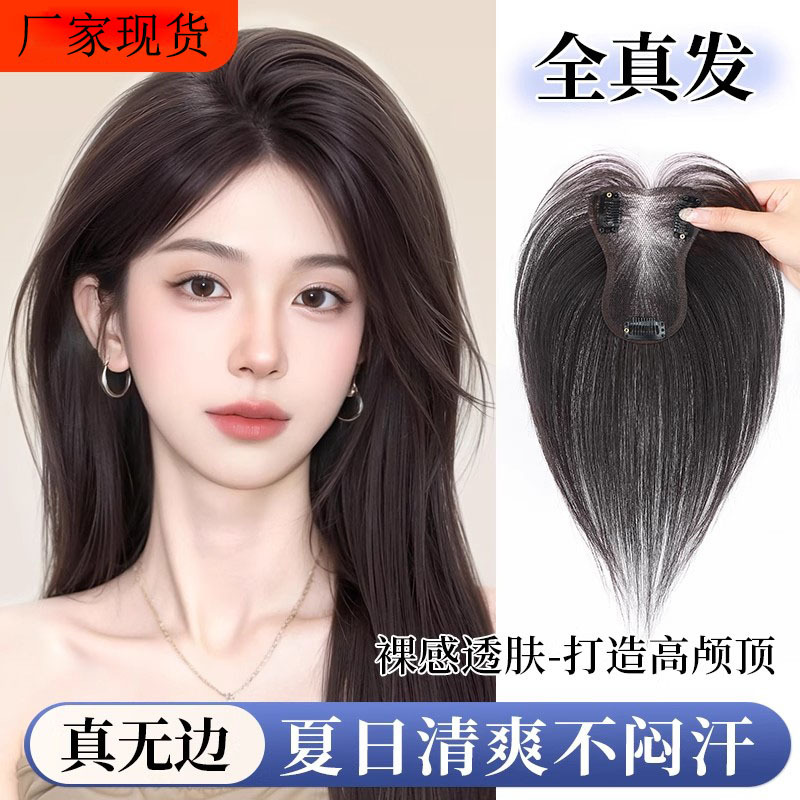 夏季轻薄瑞士网假发女全真发心形冰丝内网透气蓬松增发量补发片