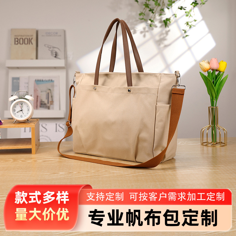 厂家批发加厚帆布手提包大容量款女士单肩包简约款可加印logo图案