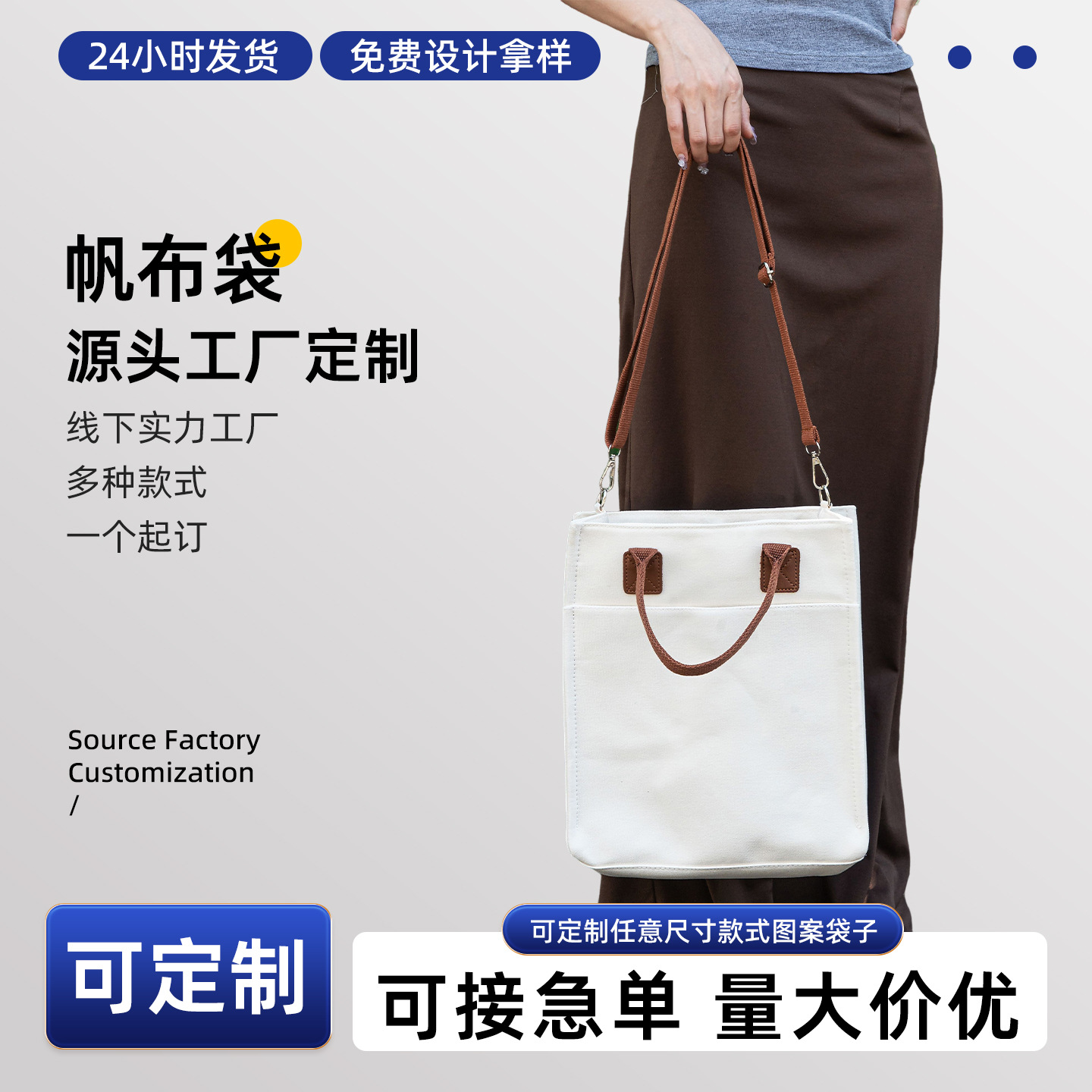 厂家供应斜跨手提包包女可印logo立体帆布袋高级感加印图案大容量