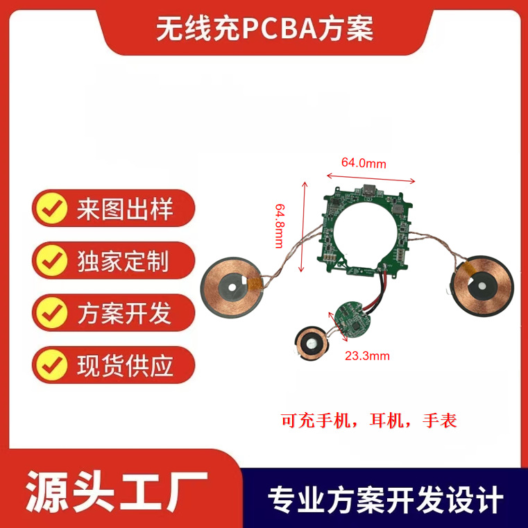 三合一PCBA板无线充模块 可同时充手机耳机手表15w+5w+2.5w方案