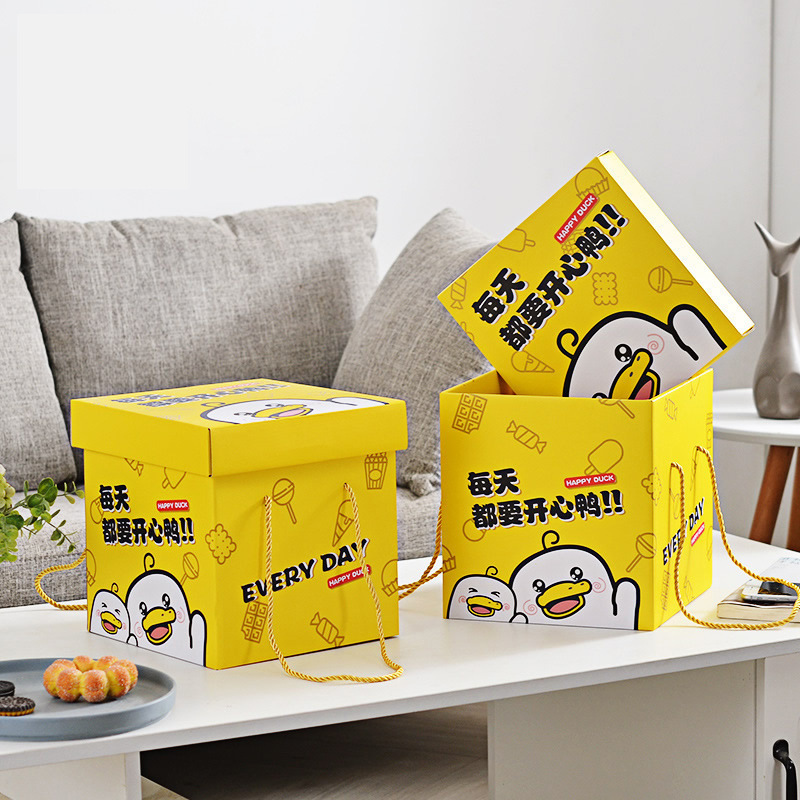 定制正方形卡通盒子零食包装礼品箱纸质可印刷带手提绳大号天地盒