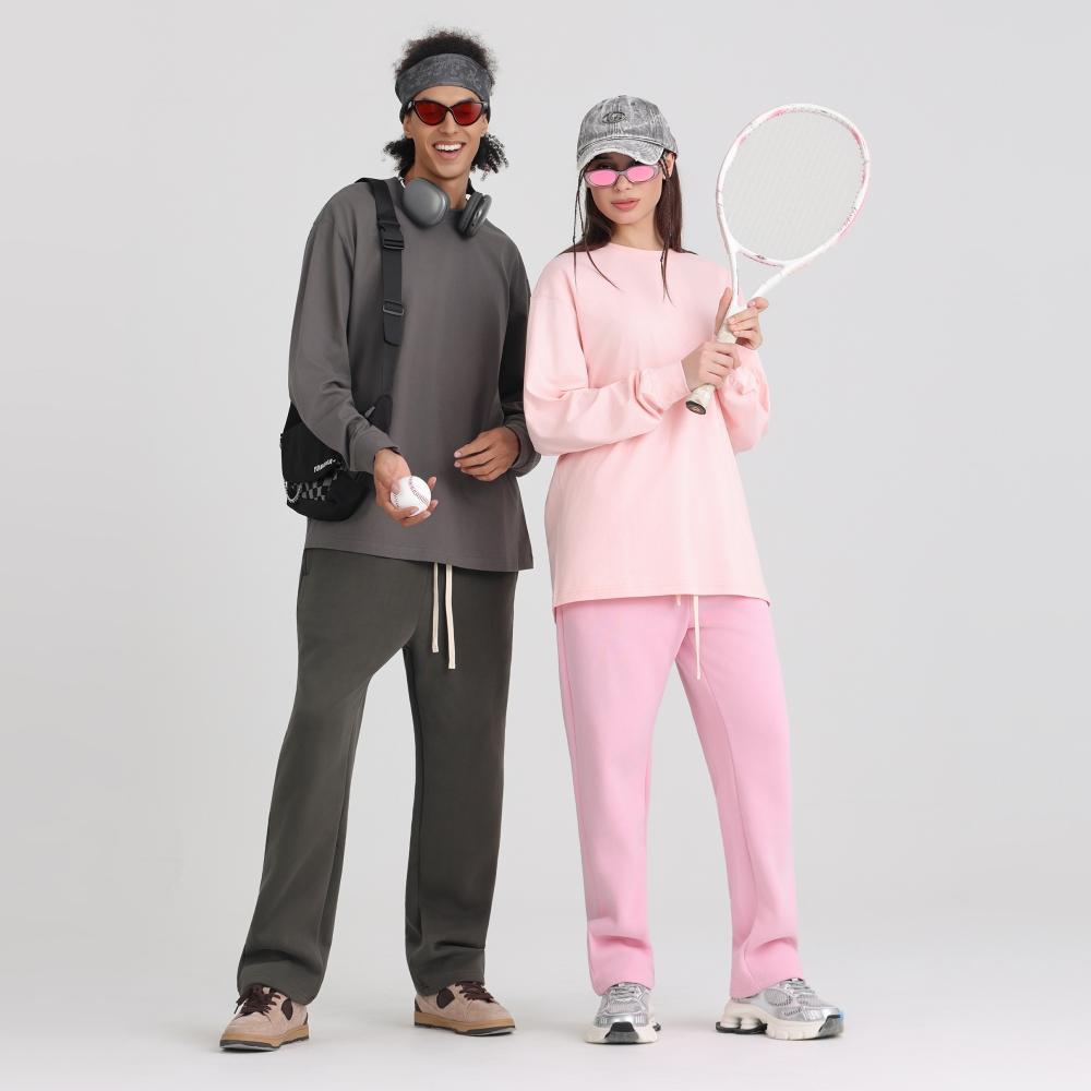 超大码男士长袖T恤宽松版长袖打底衫240克美式复古纯棉定制印LOGO
