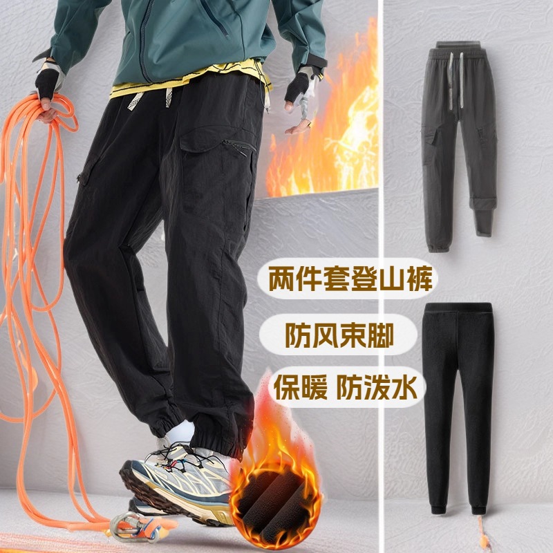 新款冲锋裤户外休闲裤登山运动长裤加厚软壳裤工装登山裤定制印字