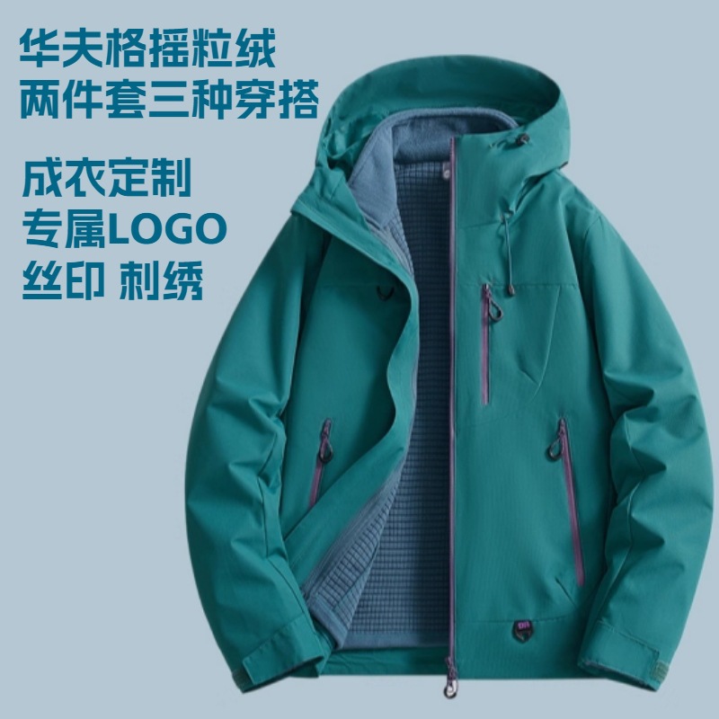 华夫格摇粒绒三合一冲锋衣两件套防风防水定制印绣LOGO户外工作服