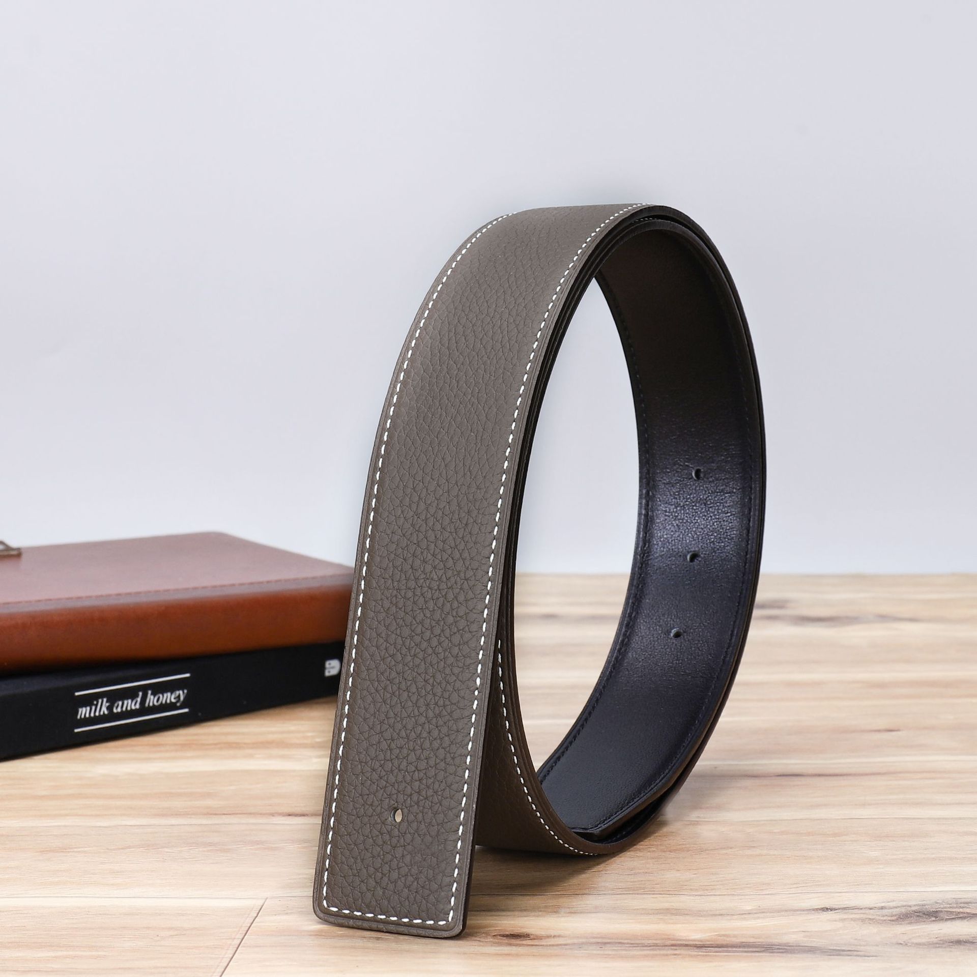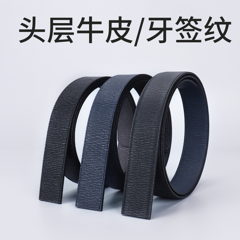 批发 3.4cm 双面头层小牛纹牛皮冲孔带身 头层牛皮腰带条皮具制做