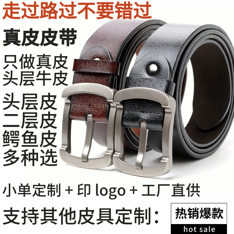 3.4 cm头层猪皮纹配平纹牛皮冲孔带身男士真皮皮带广州厂家批发