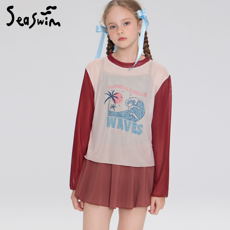 泳衣女中大童保守2025新款学生防晒三件套游泳馆专用泳装度假泳衣