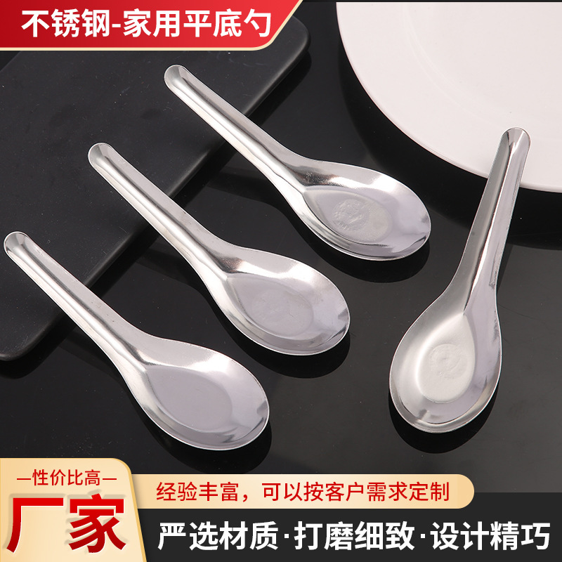 新款不锈钢勺子学校餐厅成人汤匙平底餐勺汤勺匙调羹吃饭勺批发