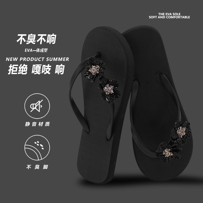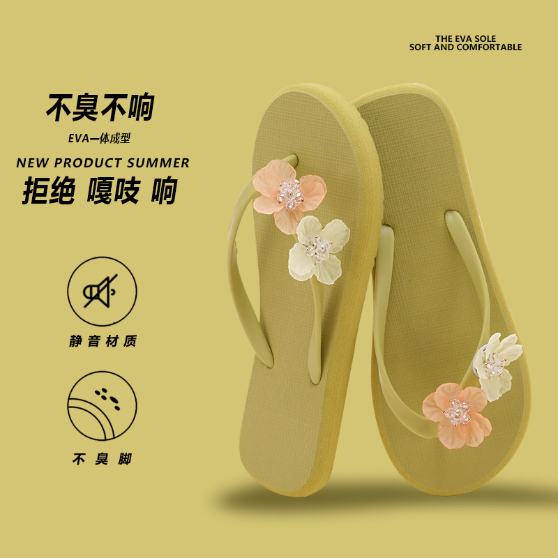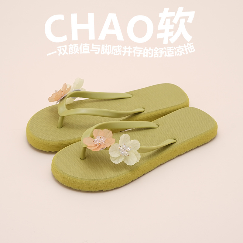 夏季花朵装饰人字拖软萌仙女风夹脚拖CHAO软舒适海边夹脚防滑凉拖