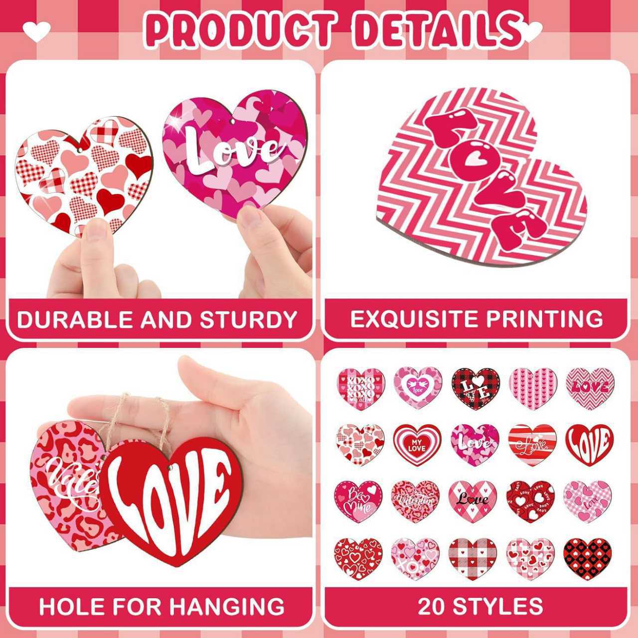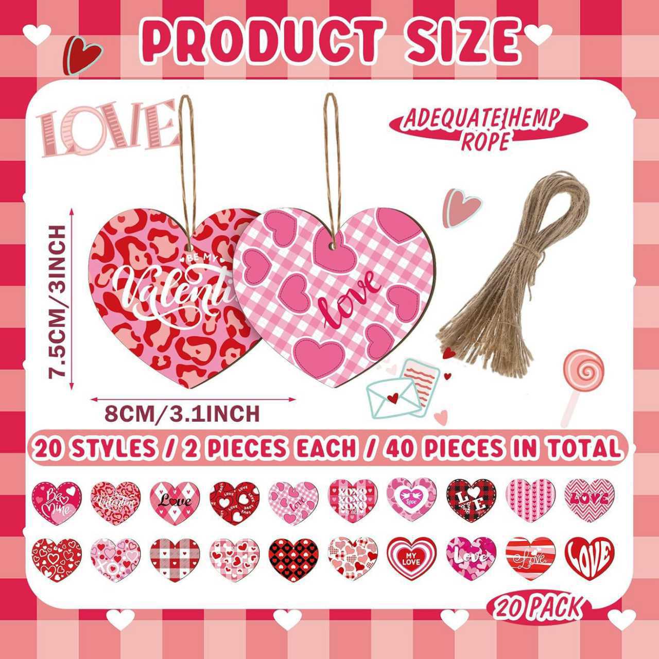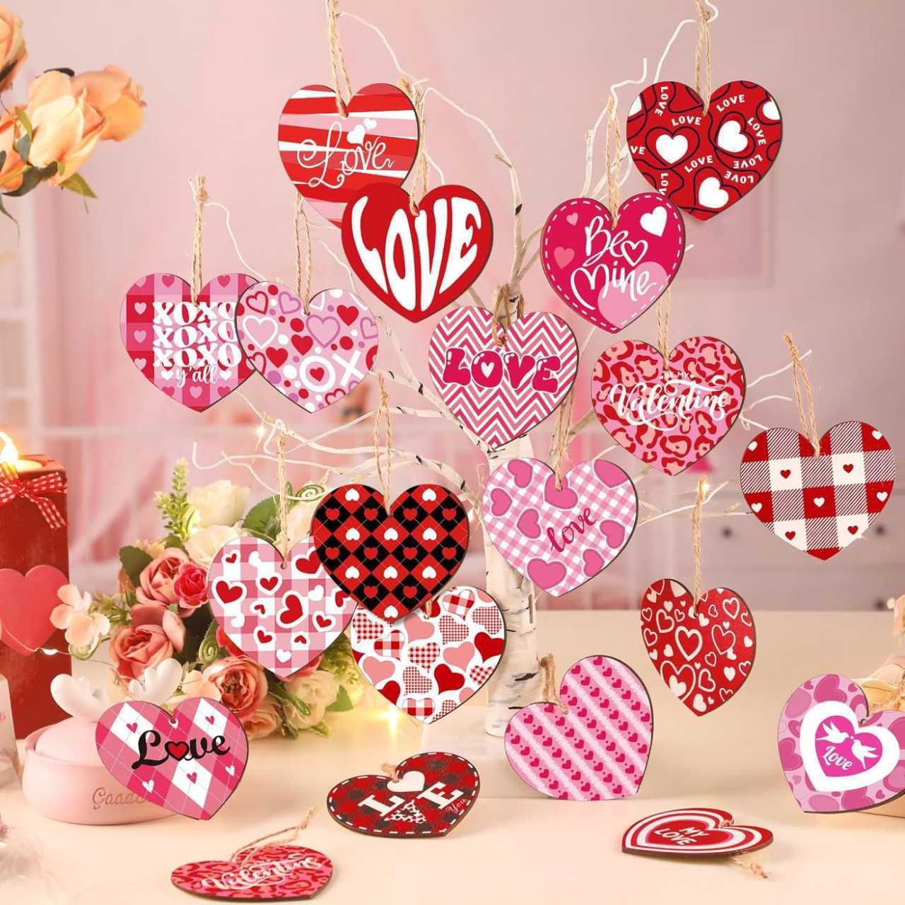 跨境新品情人节爱心木制悬挂装饰创意心形木质挂件