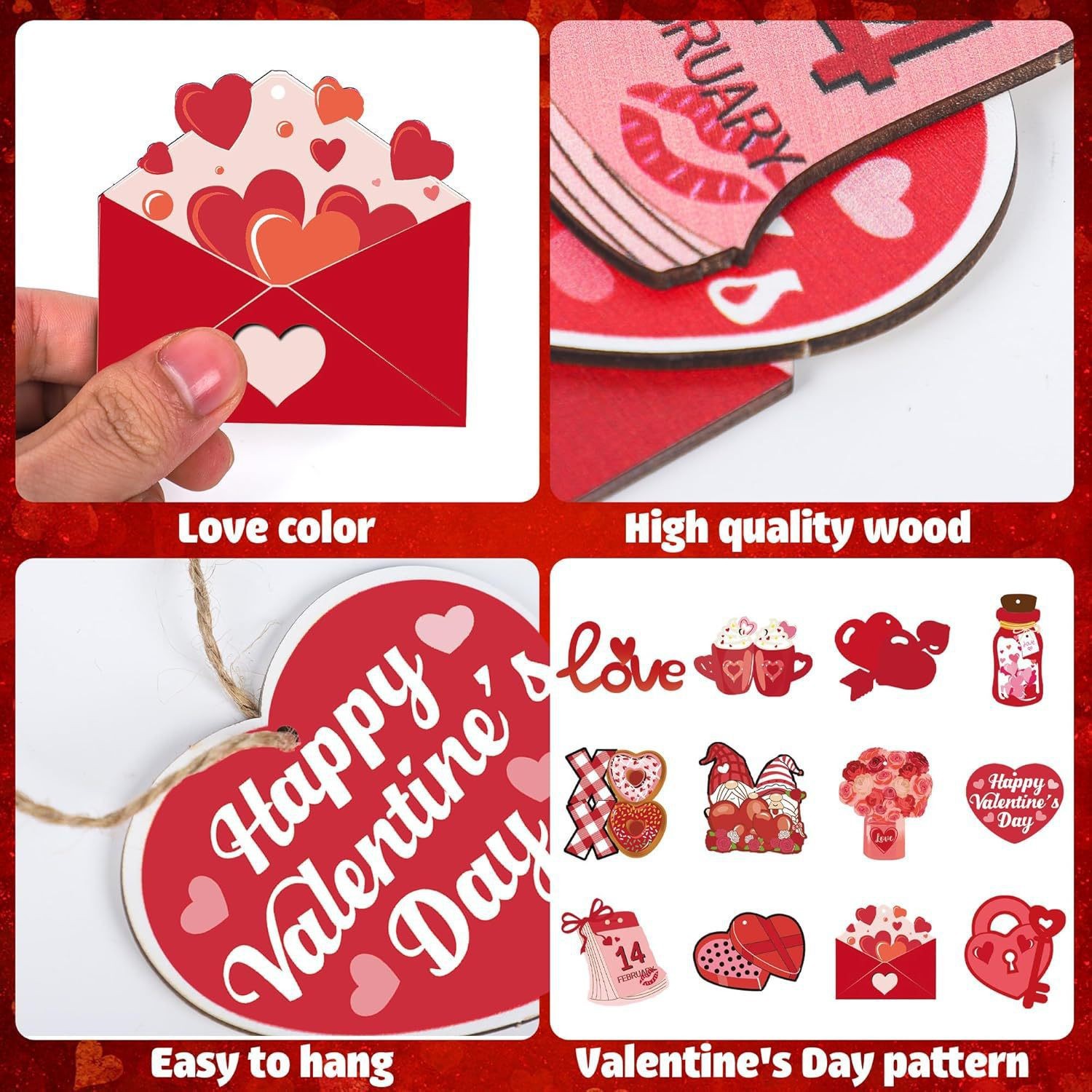 新款12件情人节木制挂饰爱心形小矮人婚礼家居派对装饰挂饰挂件