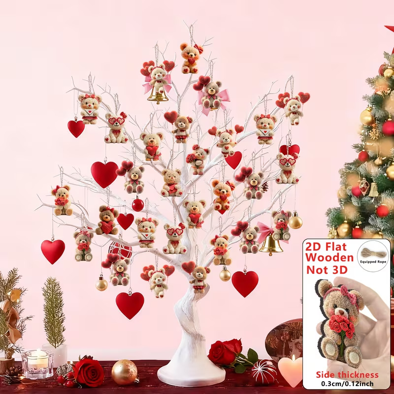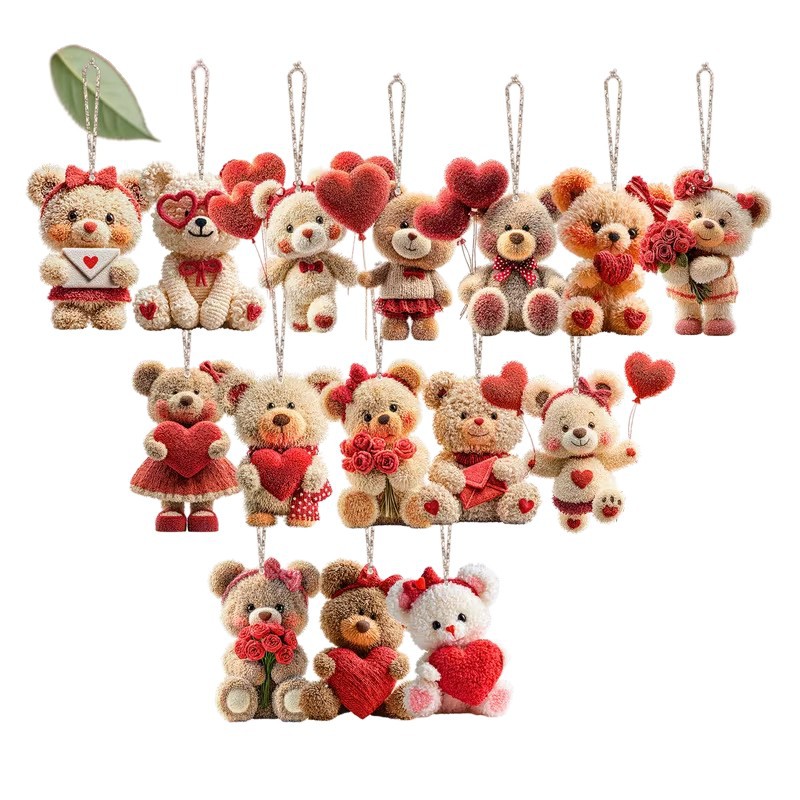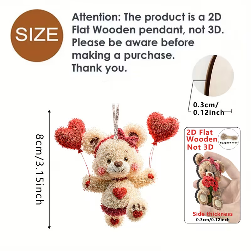 情人节新品15件爱心熊木质可爱熊吊坠适用于家居装饰办公室教室装
