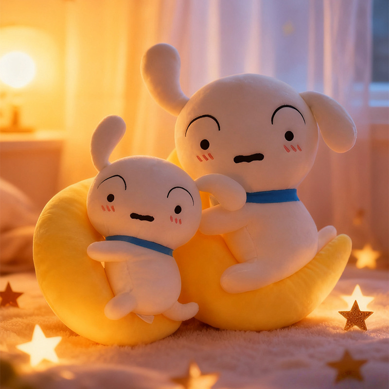 新款可爱晚安睡衣小新玩偶生日礼物公仔陪睡毛绒玩具月亮小白批发