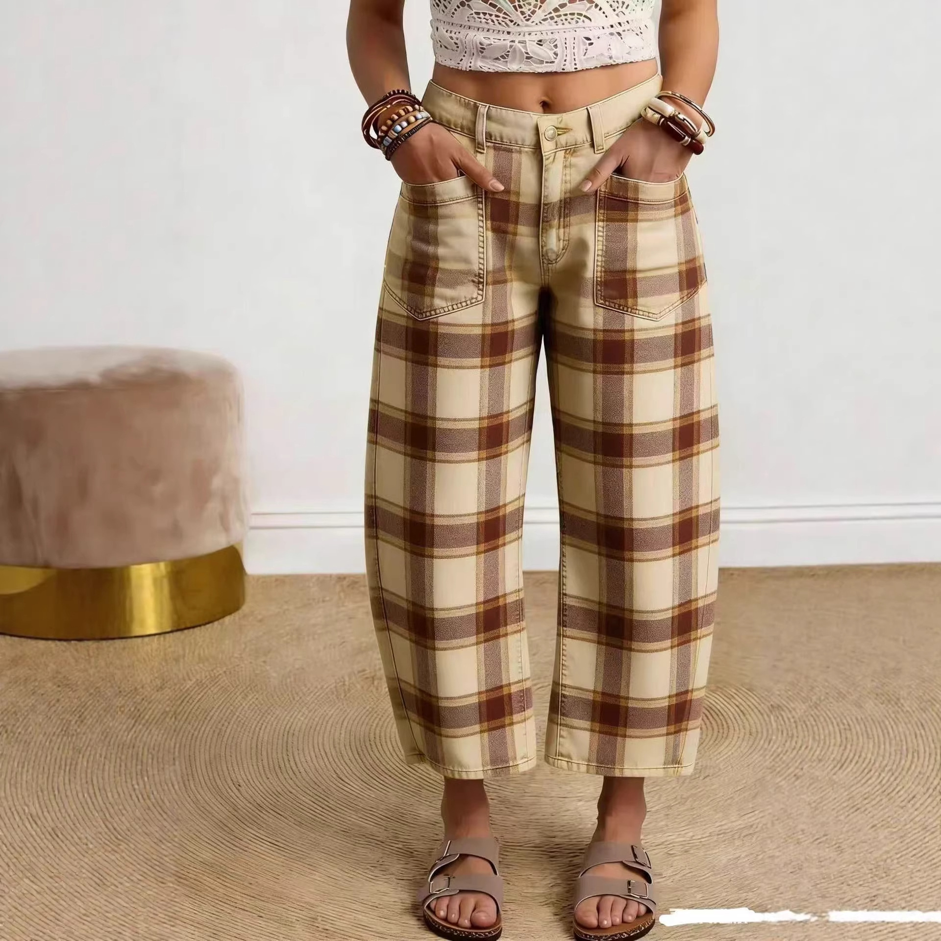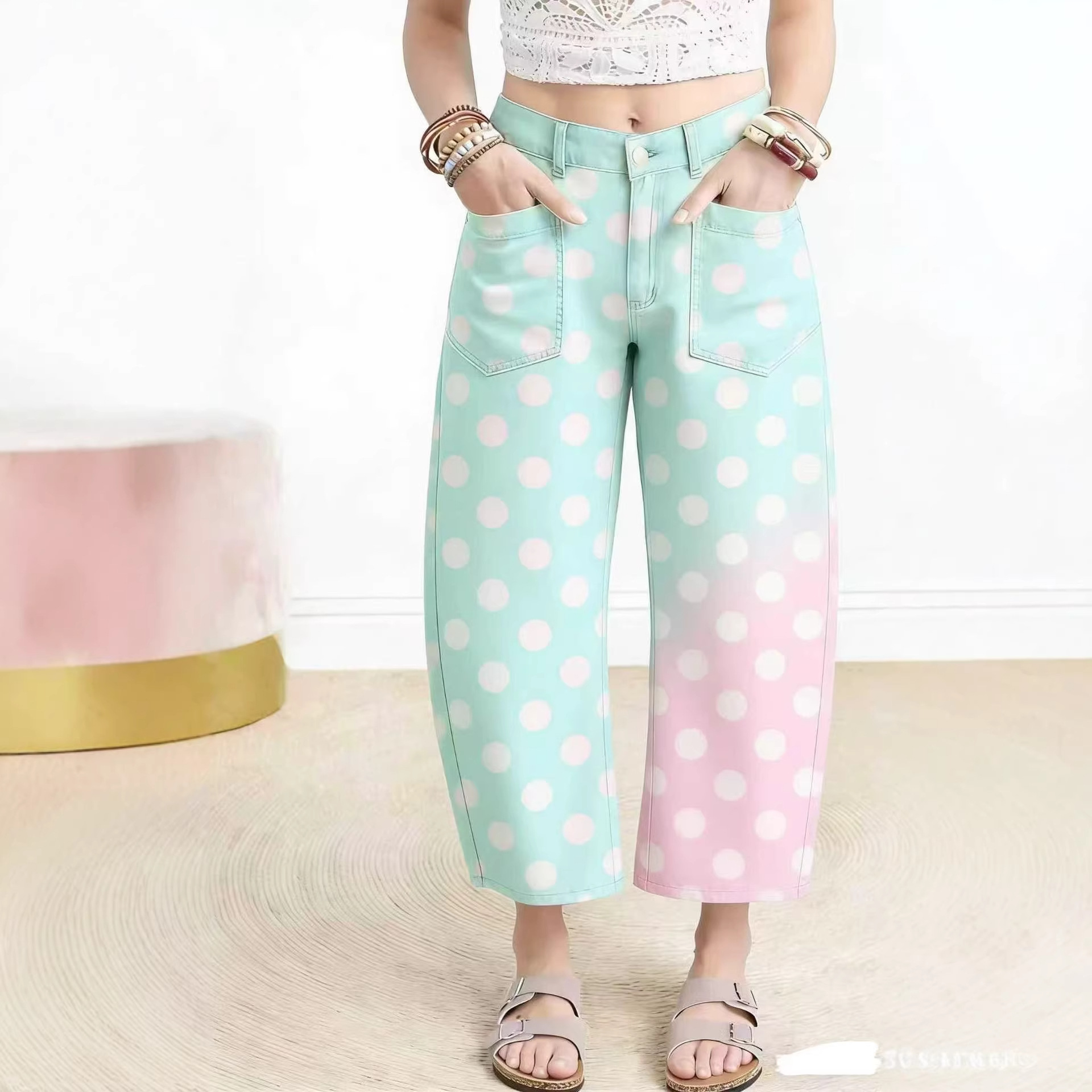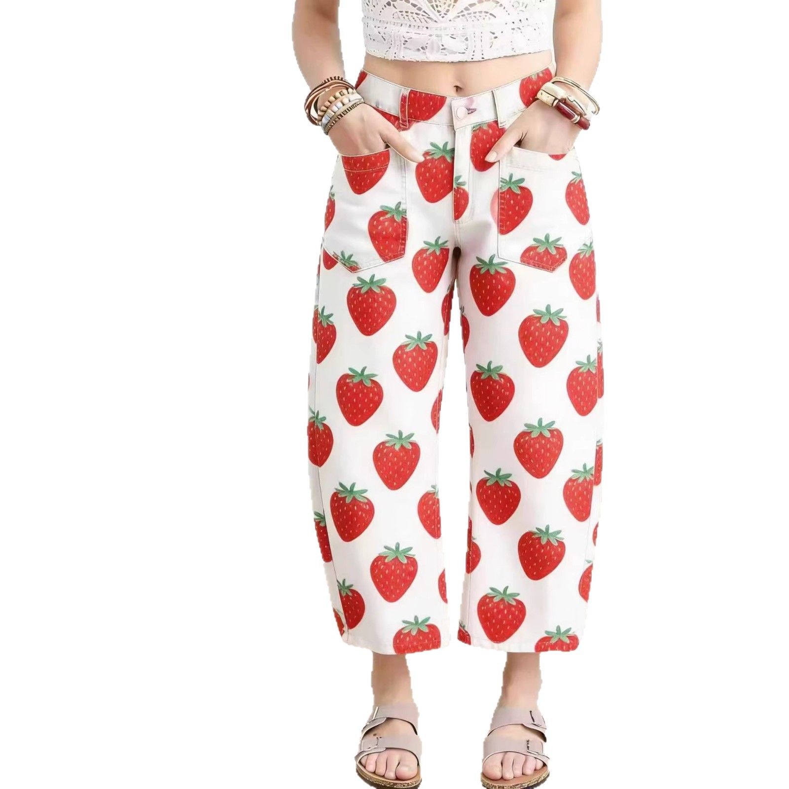 外贸独立站亚马逊跨境爆款女士九分裤花卉3D数码印花宽松仿牛仔
