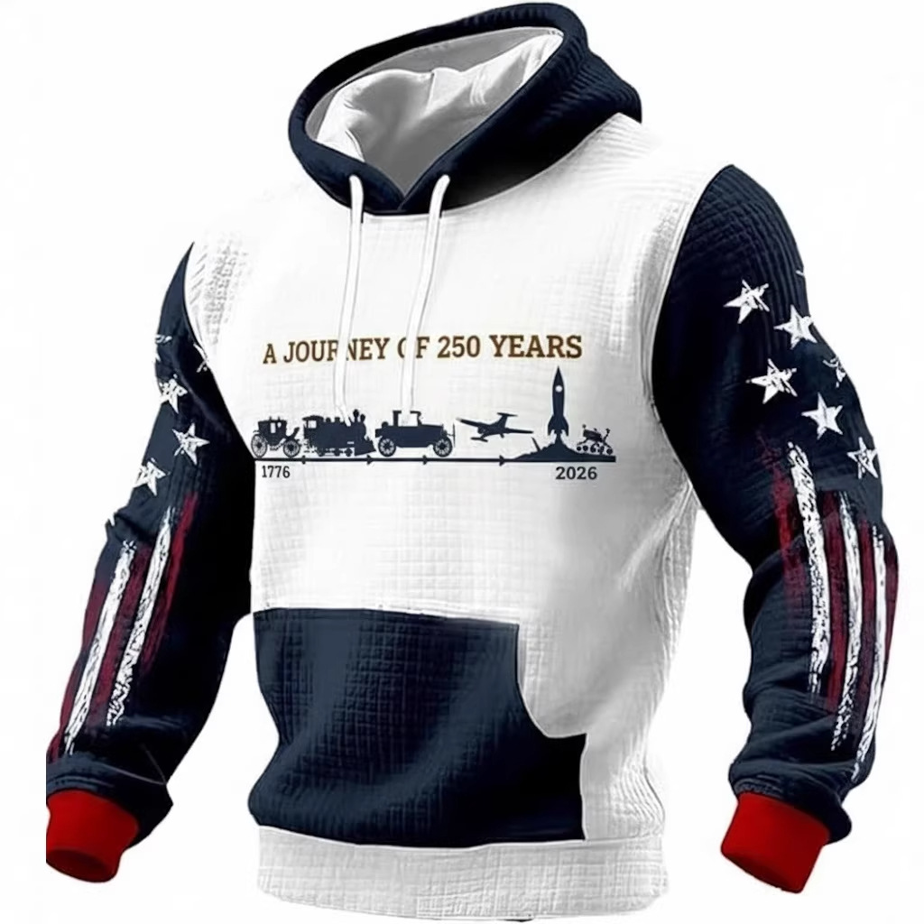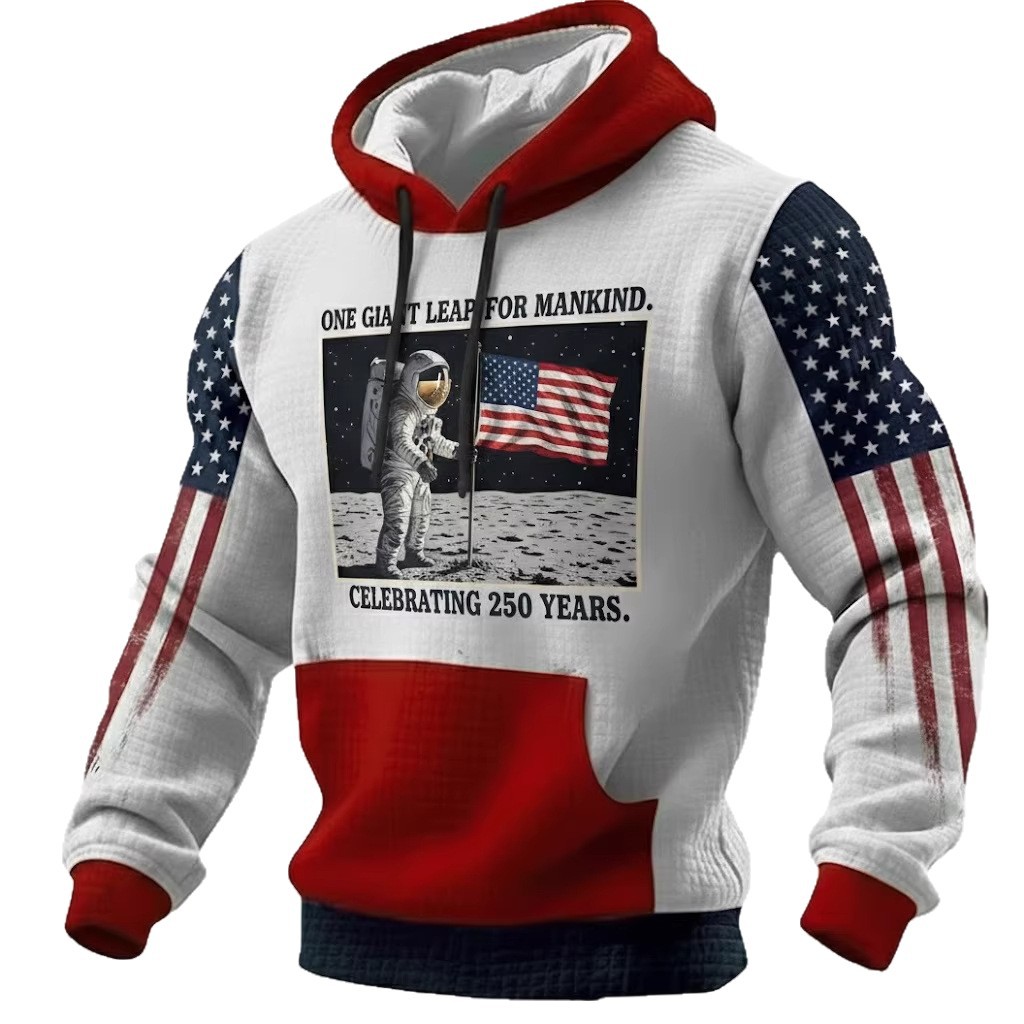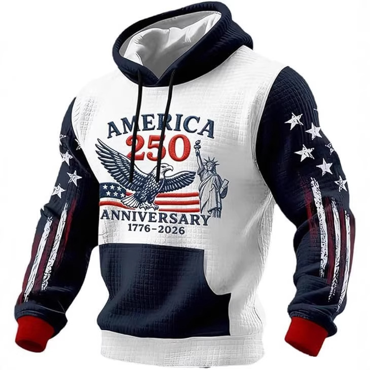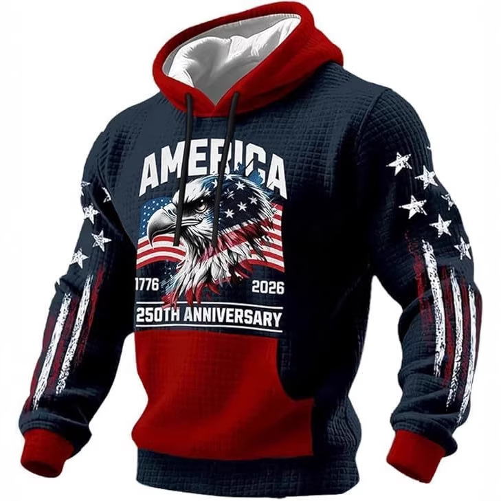美国 250 周年纪念白头鹰3D数码印花连帽卫衣 国旗袖连帽上衣