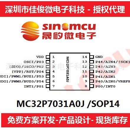 晟矽微单片机代理 MC32P7031 SOP14 MC32P7031A0J 电烤箱方案开发