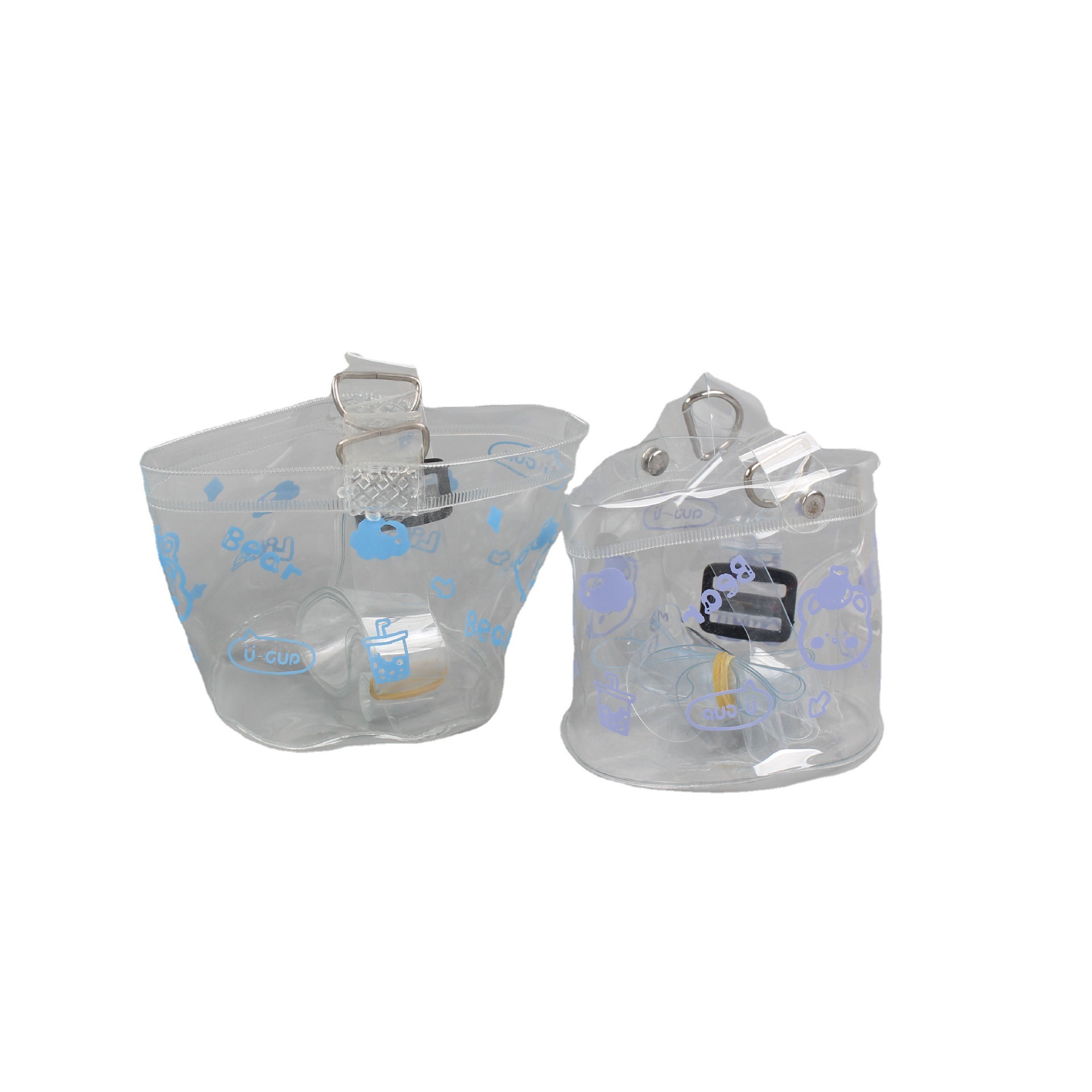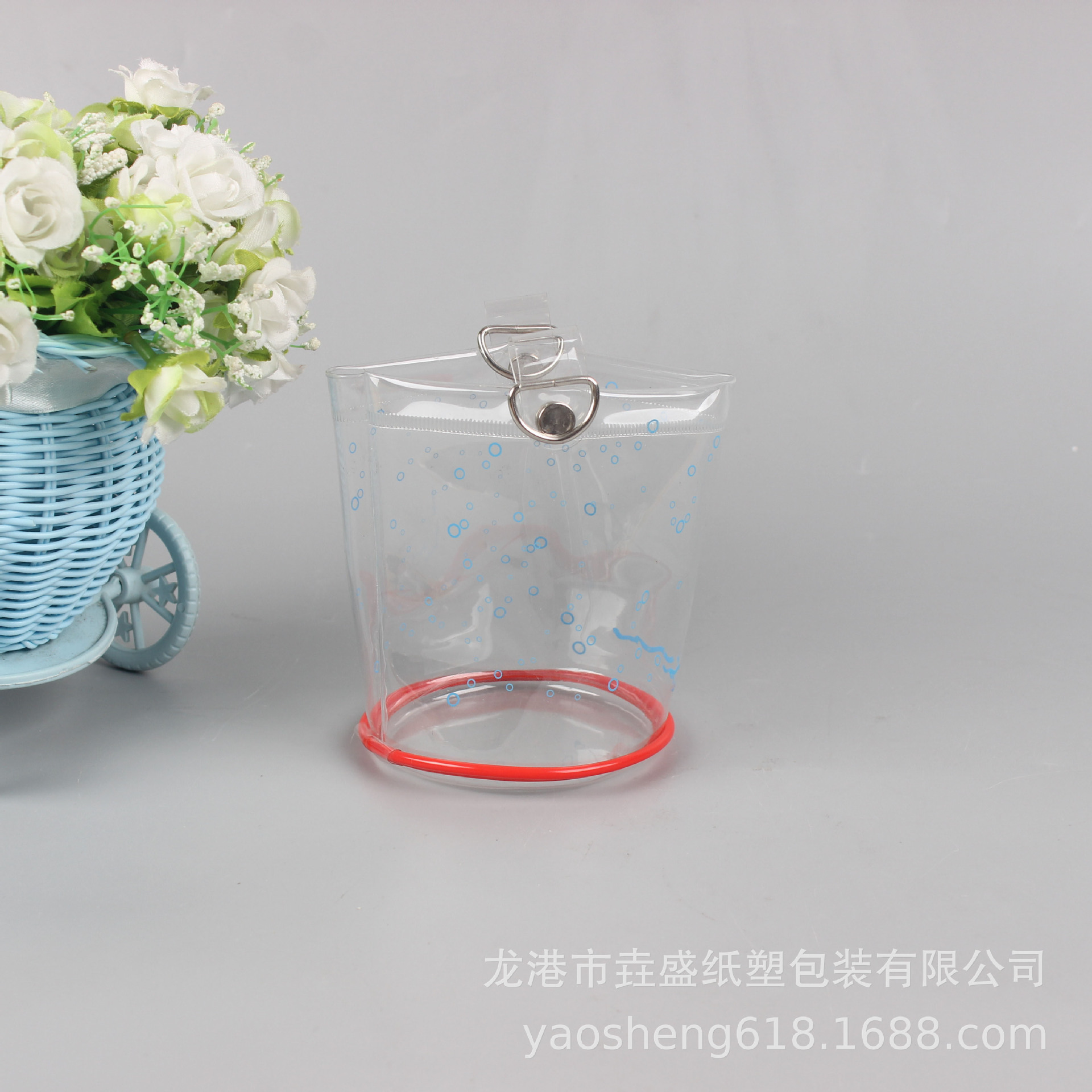 酒水促销包装袋塑料透明小挎包水杯套手提袋可定制企业商logo