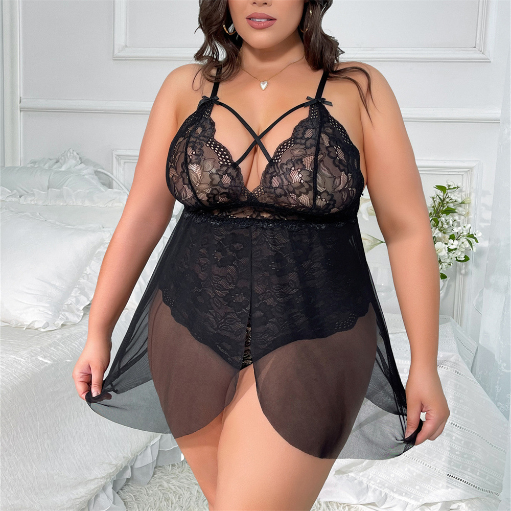 独立站新款大码女式情趣内衣按扣开档性感蕾丝睡衣显瘦内衣1X~4XL