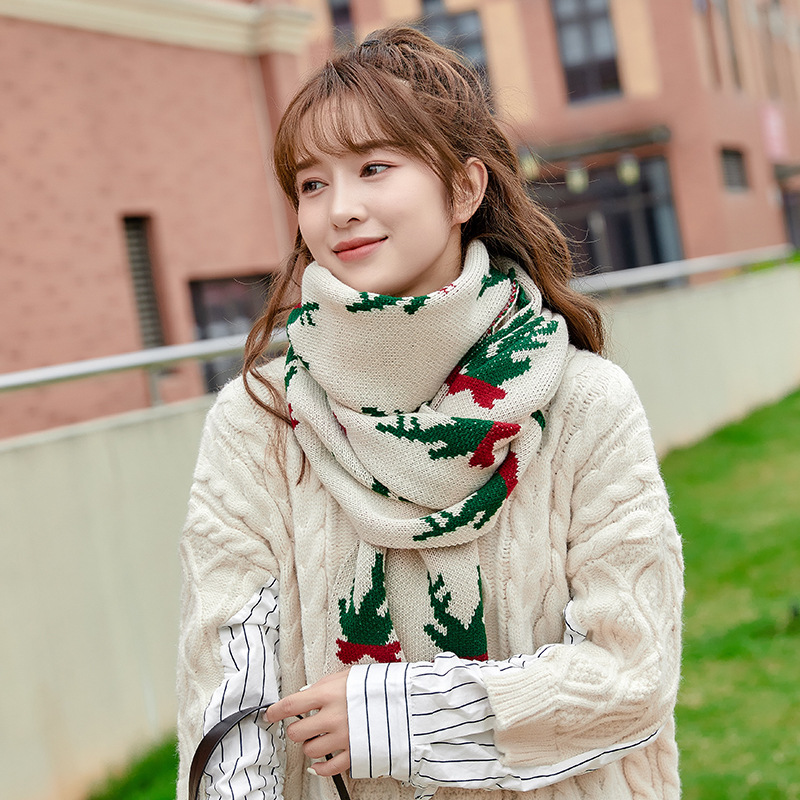 圣诞雪人针织围巾女秋冬加厚保暖新年红色学生围脖节日送礼品围巾
