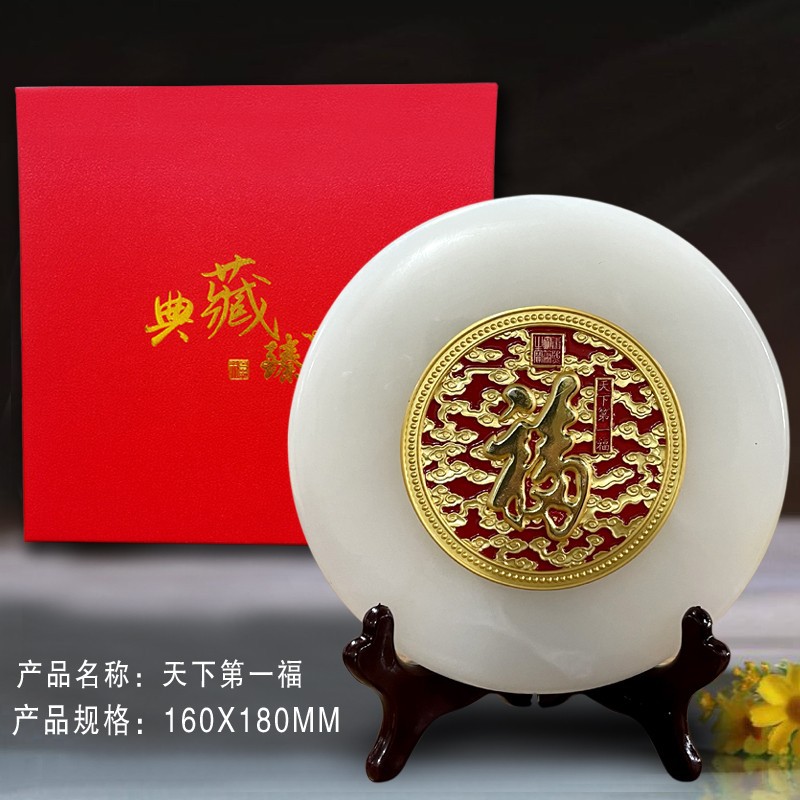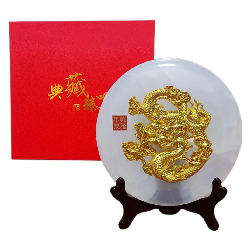 龙腾盛世玉石平安扣龙年礼品龙摆件单位公司嘉奖品保险银行纪念品