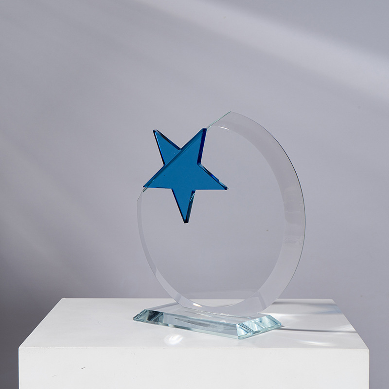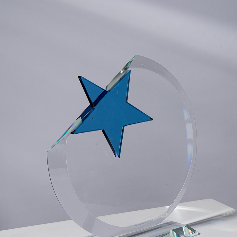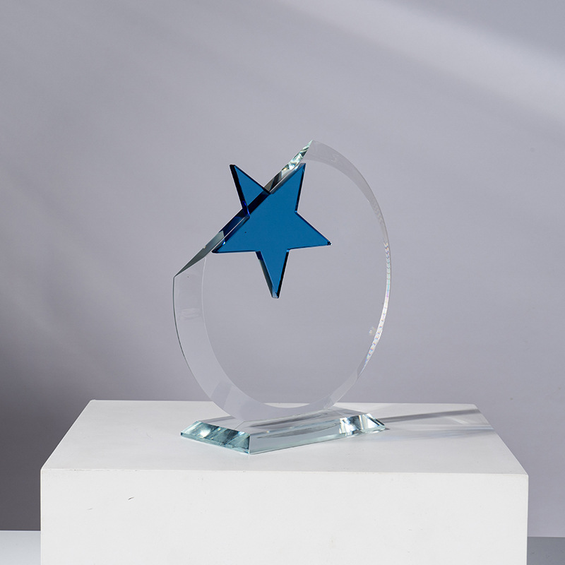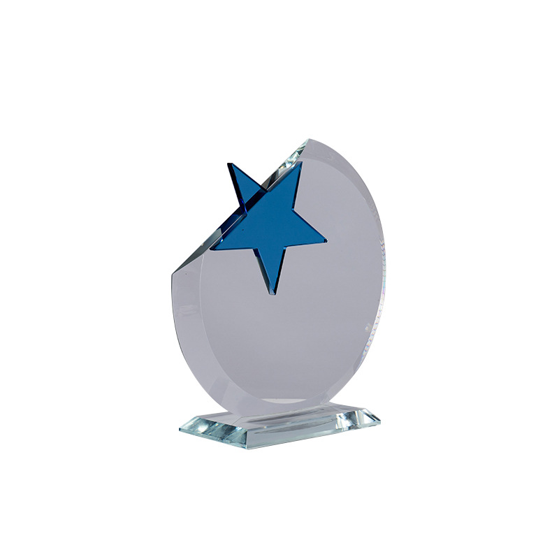新款创意水晶奖杯定制五星炫彩奖杯优秀员工团队年会颁奖奖杯批发
