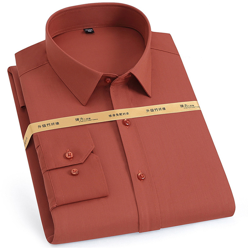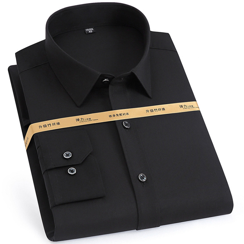 纯色正装弹力免烫休闲男士长袖衬衣翻领竹纤维商务工装竹纤维透气