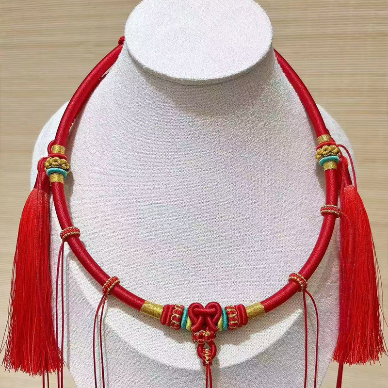 文艺复古百天项链绳细致做工宝宝项链百天满月周岁红色手工编绳
