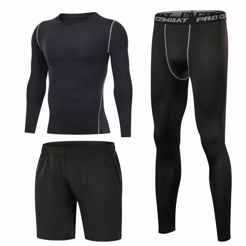 运动套装男速干紧身衣跑步健身服男训练长裤修身篮球晨跑衣服