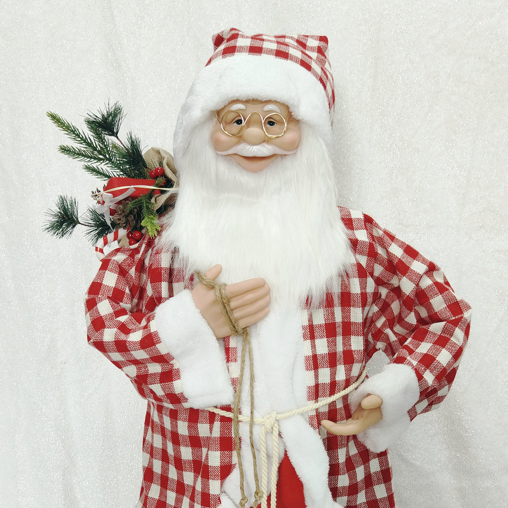 跨境圣诞节新款红白格子老人公仔橱窗装饰用品造型圣诞老人摆件