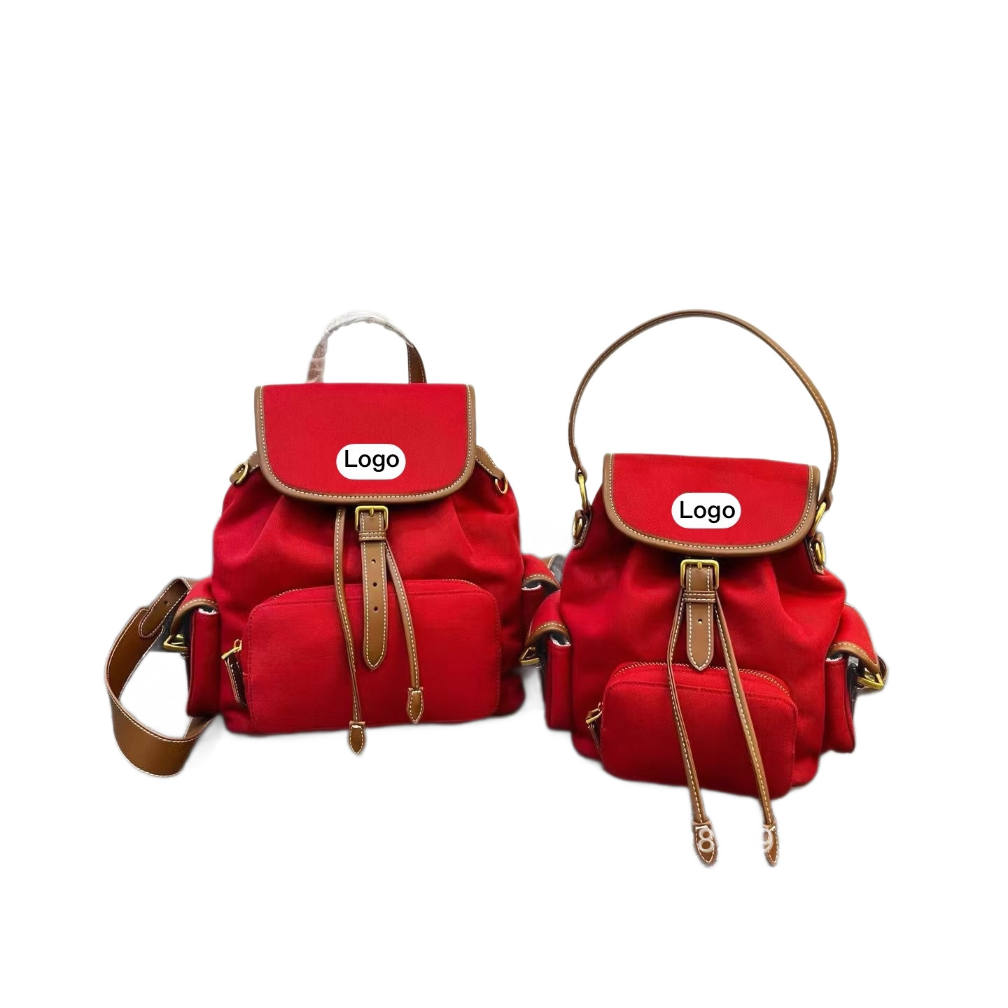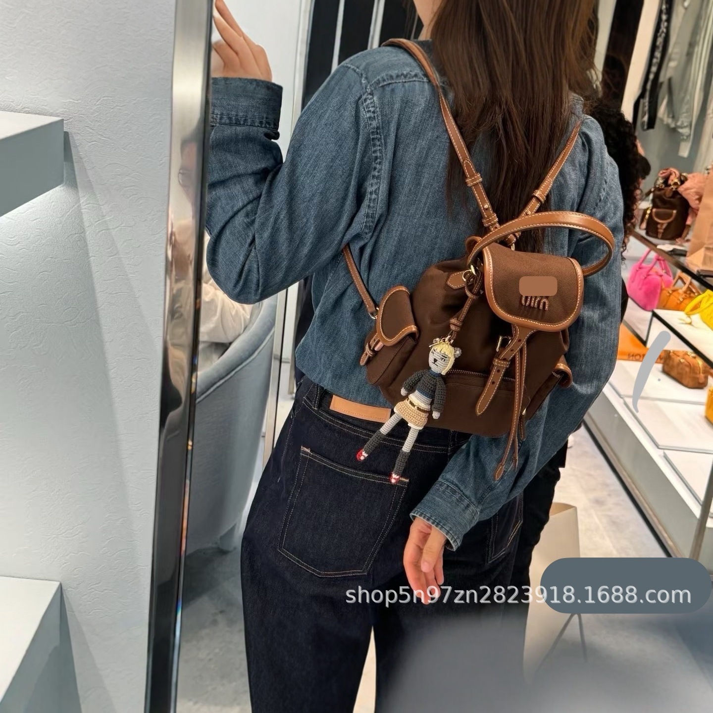 2025春夏Miu缪双肩包张元英同款焦糖色纯色抽绳透气设计新款