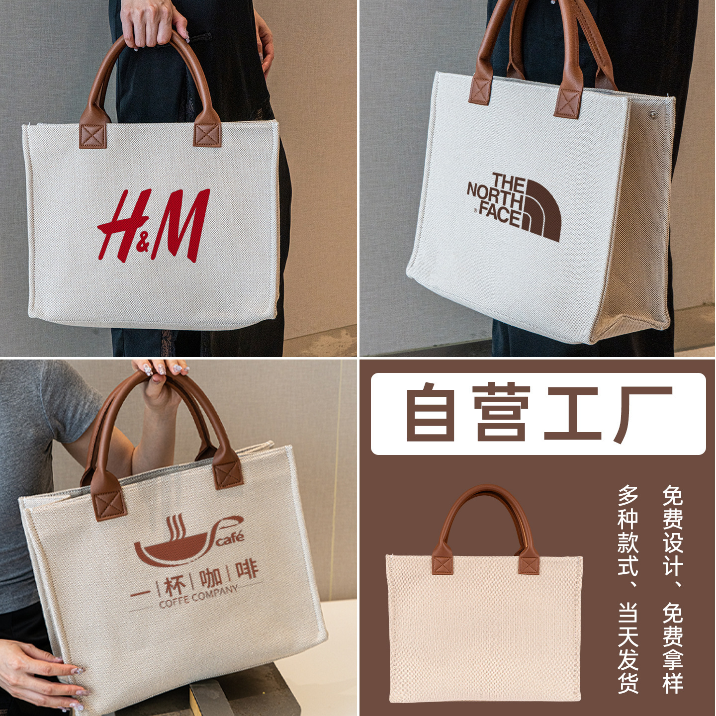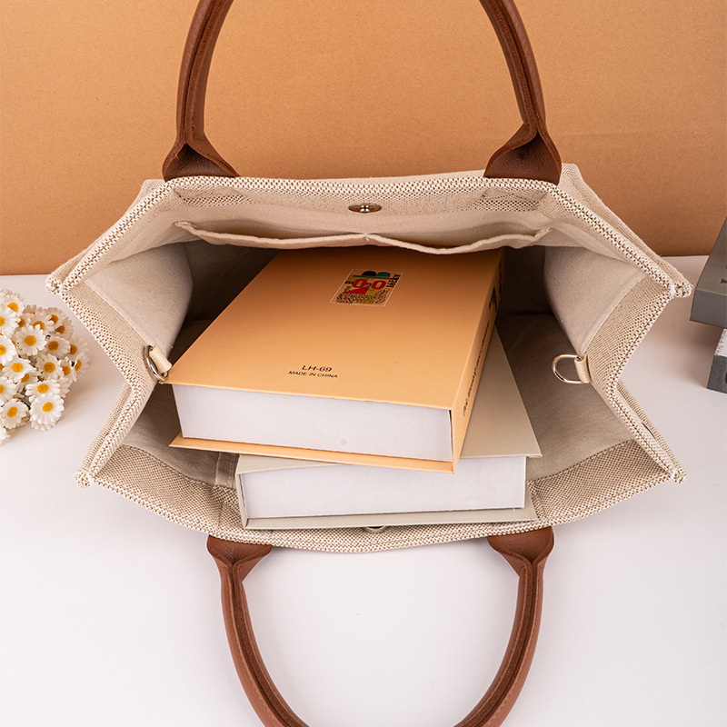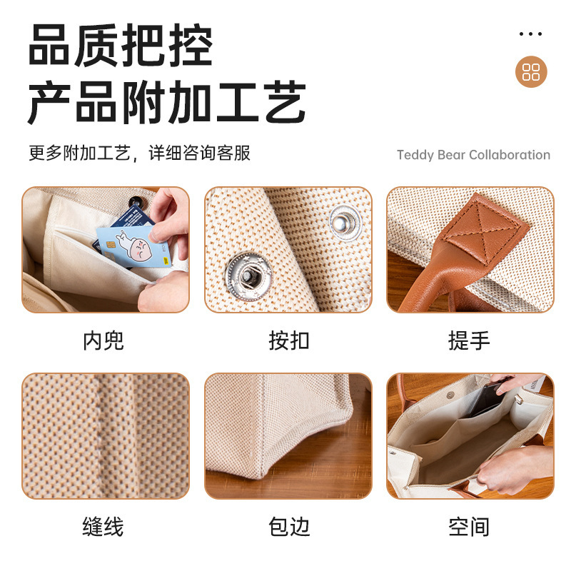 新款皮革拼双色帆布托特包立体手提大容量包可加印 logo现货批发