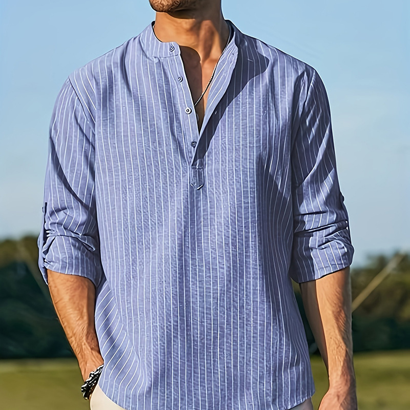 现货新款欧美秋季男装上衣男式条纹印花休闲衬衫长袖宽松衬衣