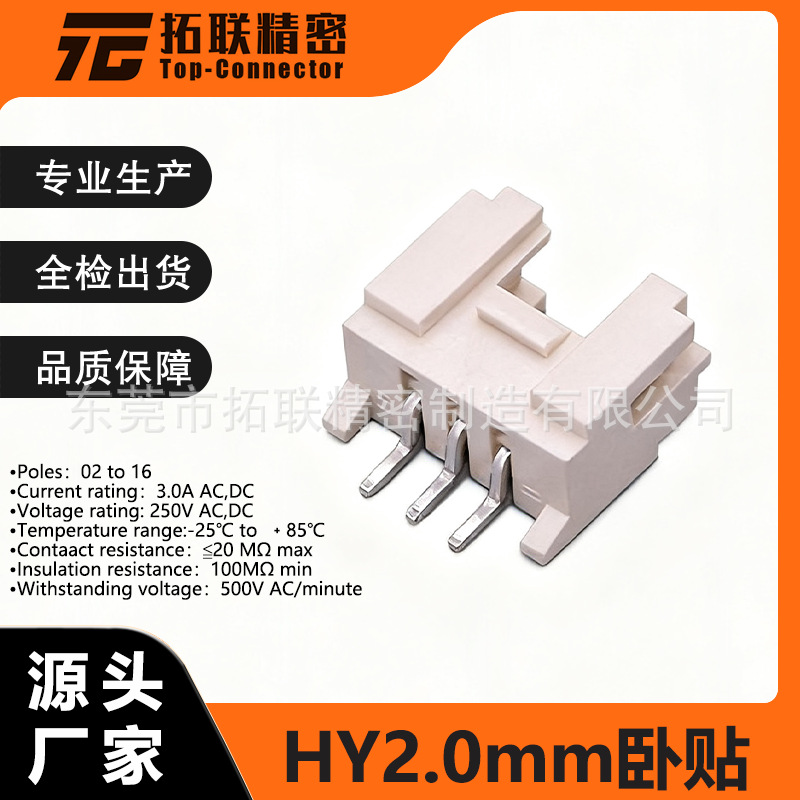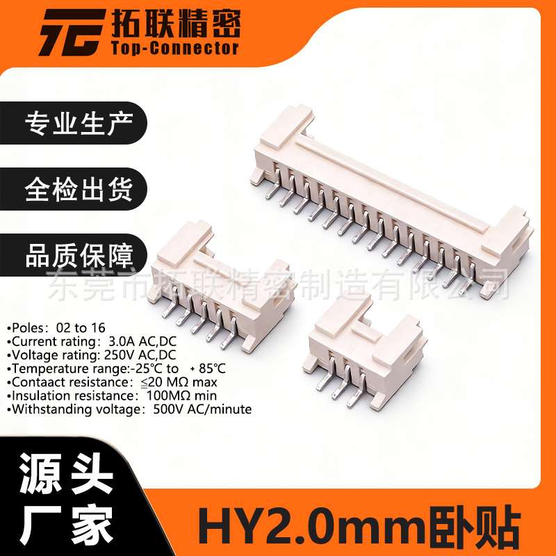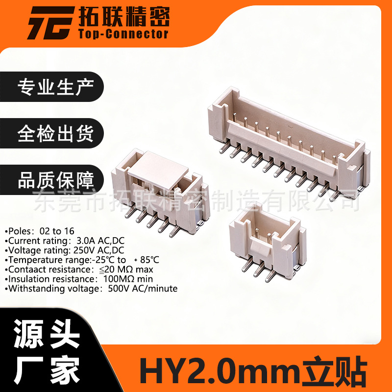 现货HY立贴 卧贴2.0mm间距卡扣插座接头座子连接器接插件编带贴片