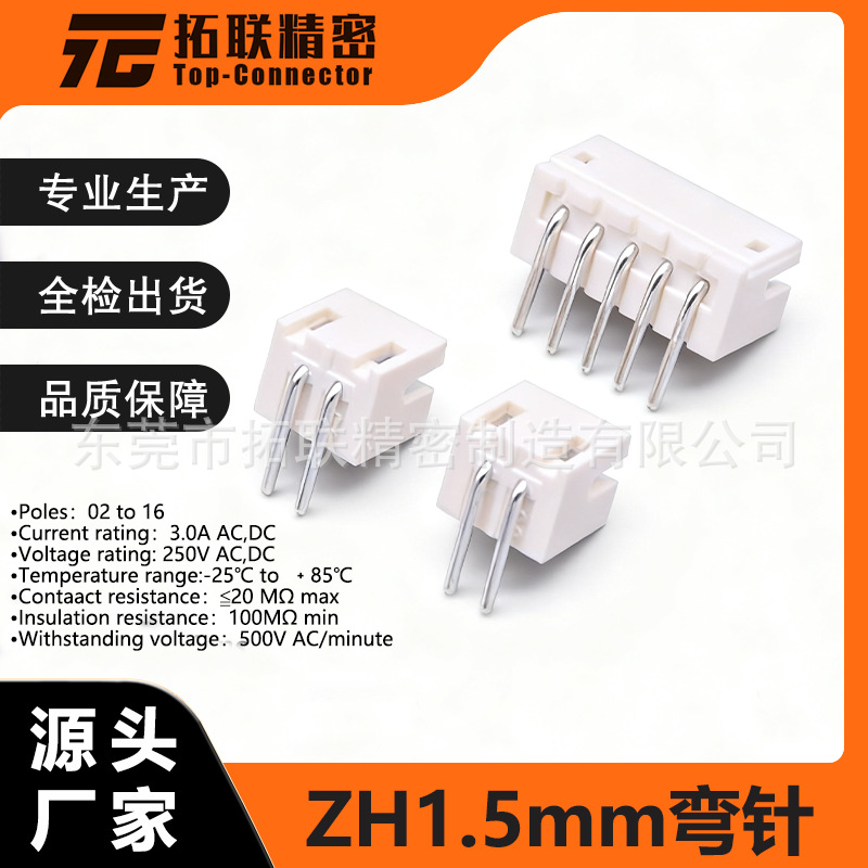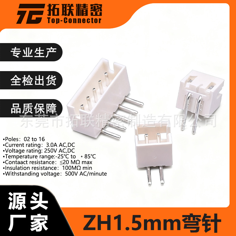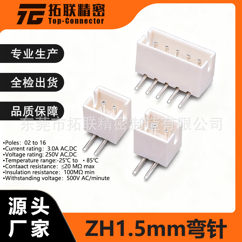 ZH 1.5 MM间距立式卧式插脚连接器针座公头母座端子座2PPCB焊接