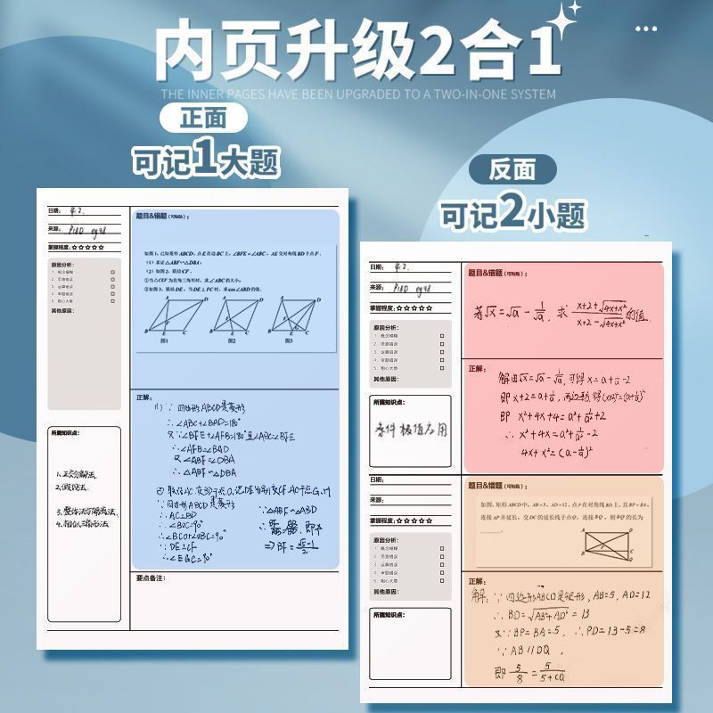 规格 | 艾宾浩斯错题本【加厚护眼】大题小题都能用 | 内文纸张页数 | 50页-100页(含) |