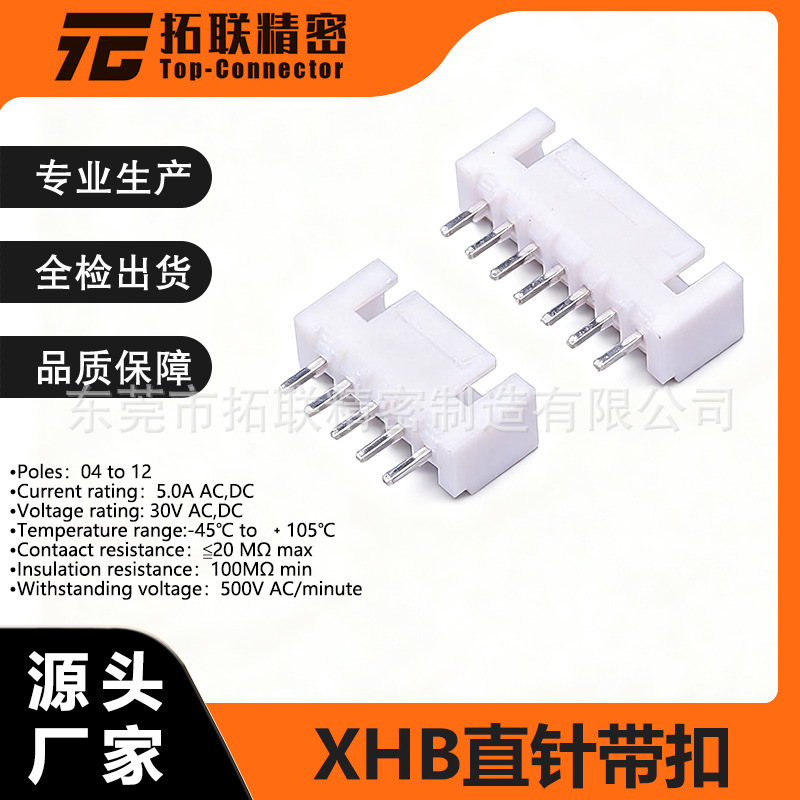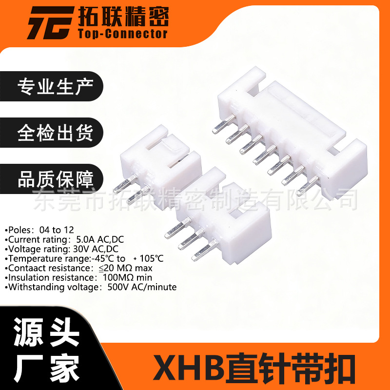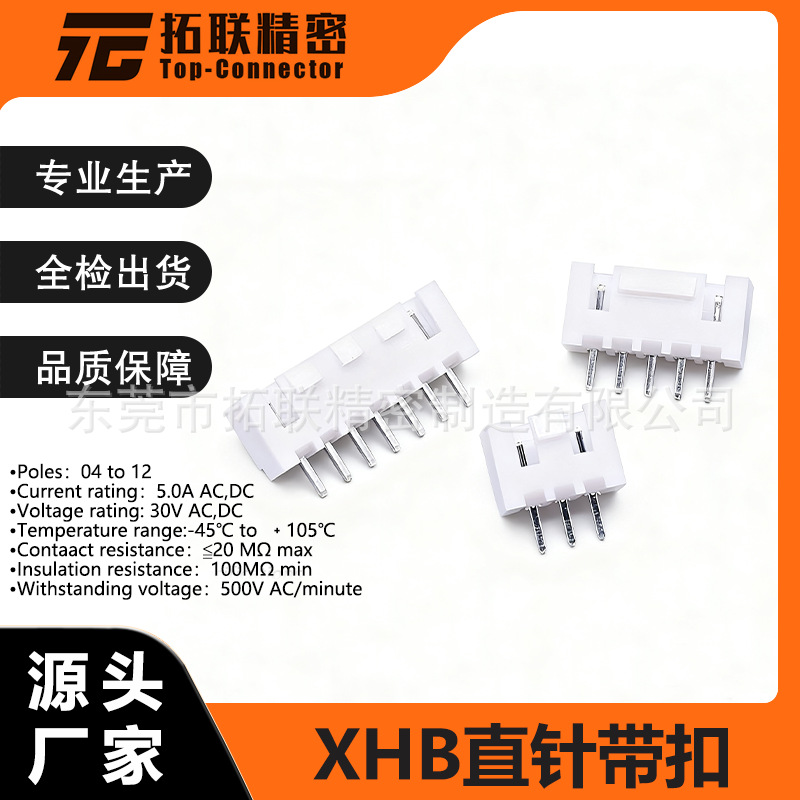 米色XHB2.54间距带扣直针直插180°可染色尼龙耐高温C3插脚连接器
