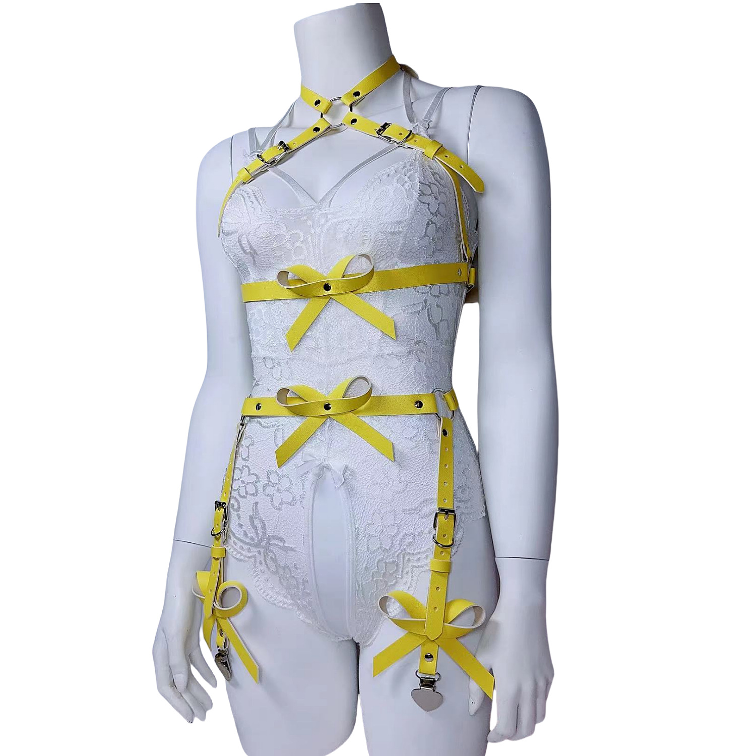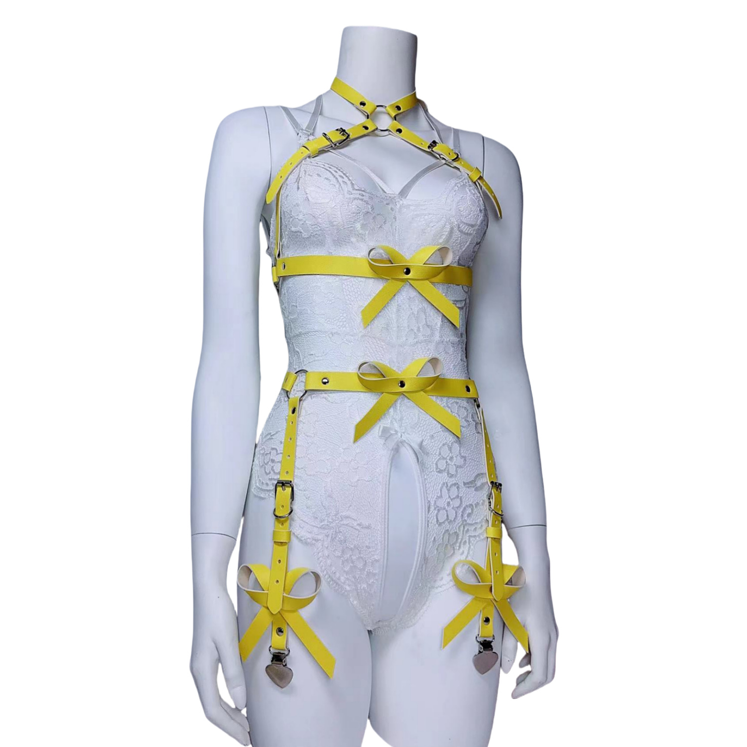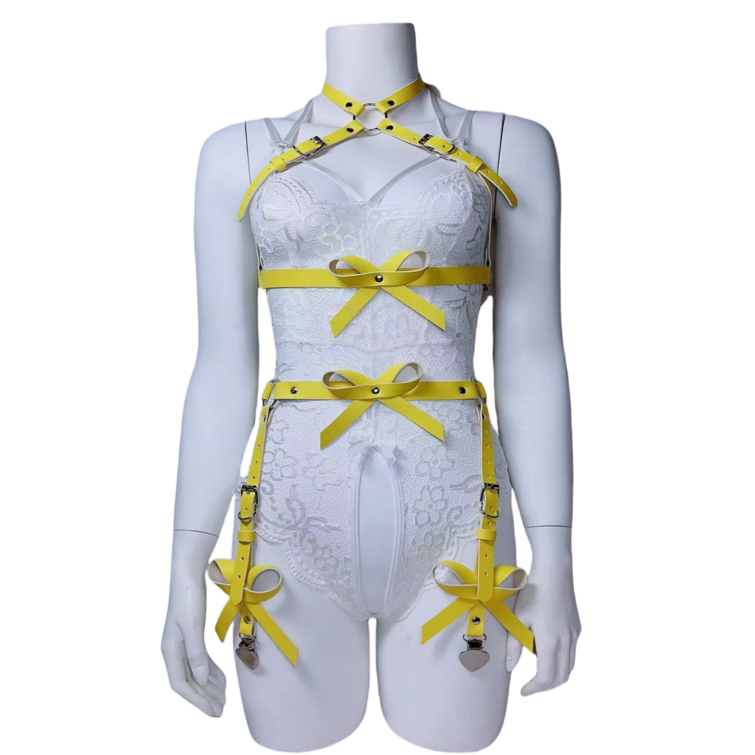 跨境女情趣套装蝴蝶结镂空大腿绑带爱心夹舞台秀新款朋克线束套装