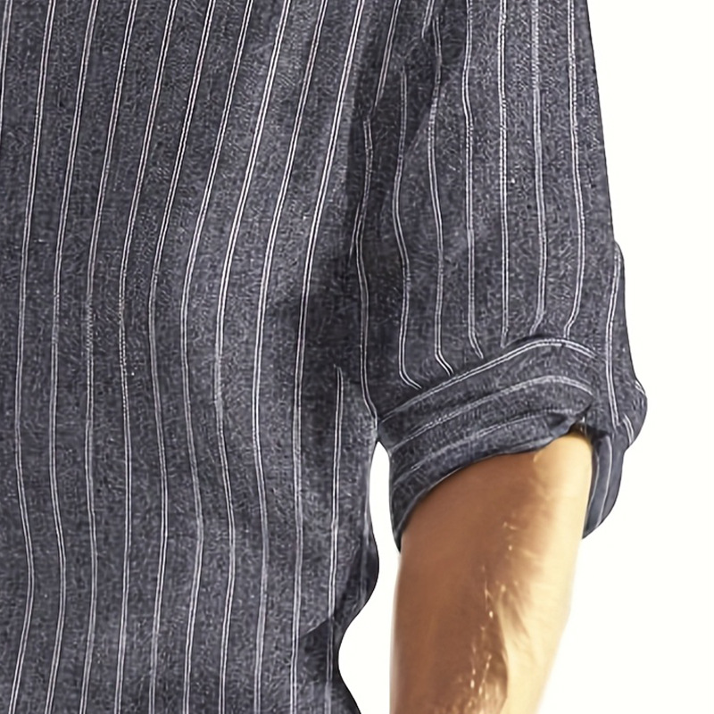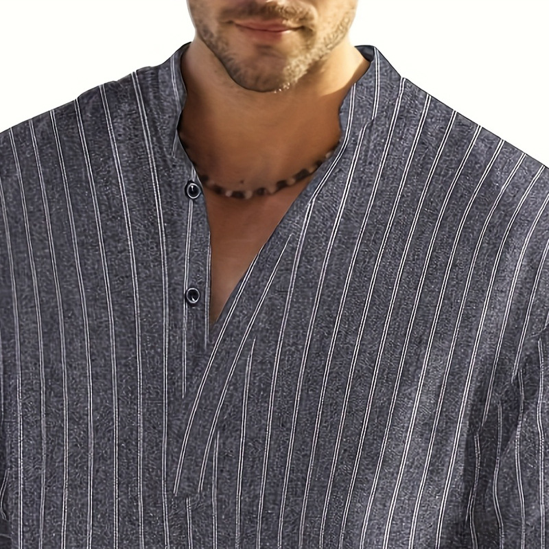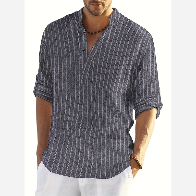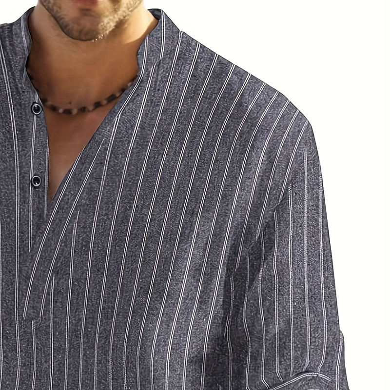 现货夏季新款简约长袖立领半开扣衫格纹衬衫男式休闲衬衫上衣