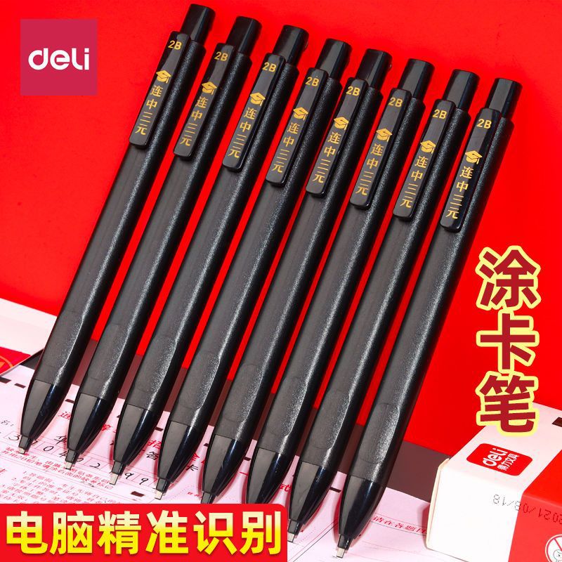 得力涂卡笔2b考试专用答题卡自动铅笔机读卡2比铅笔笔芯文具套装