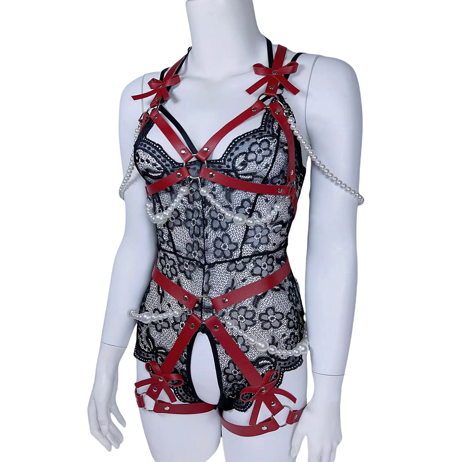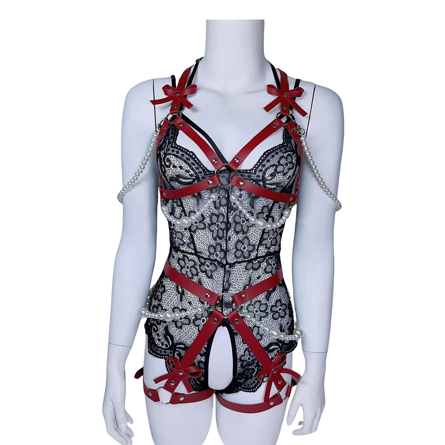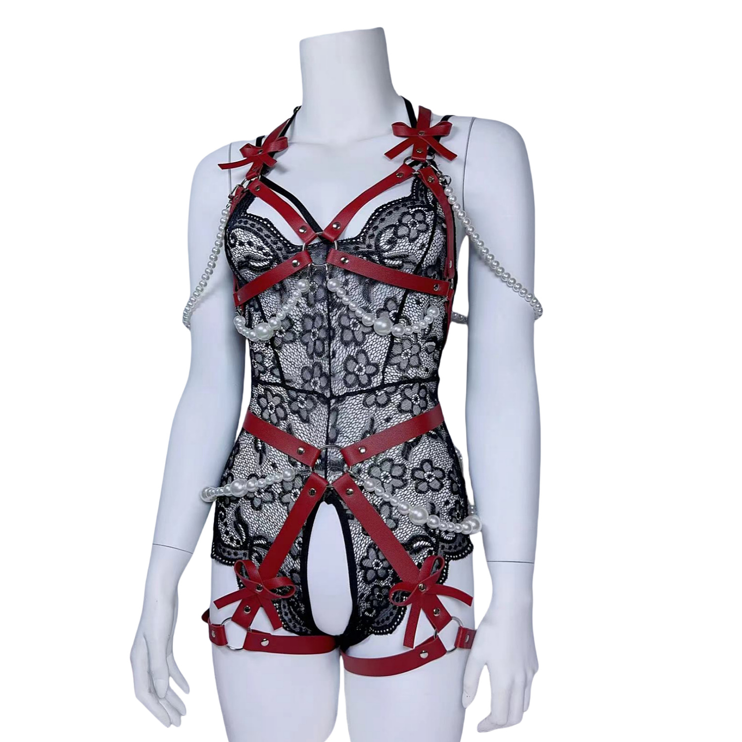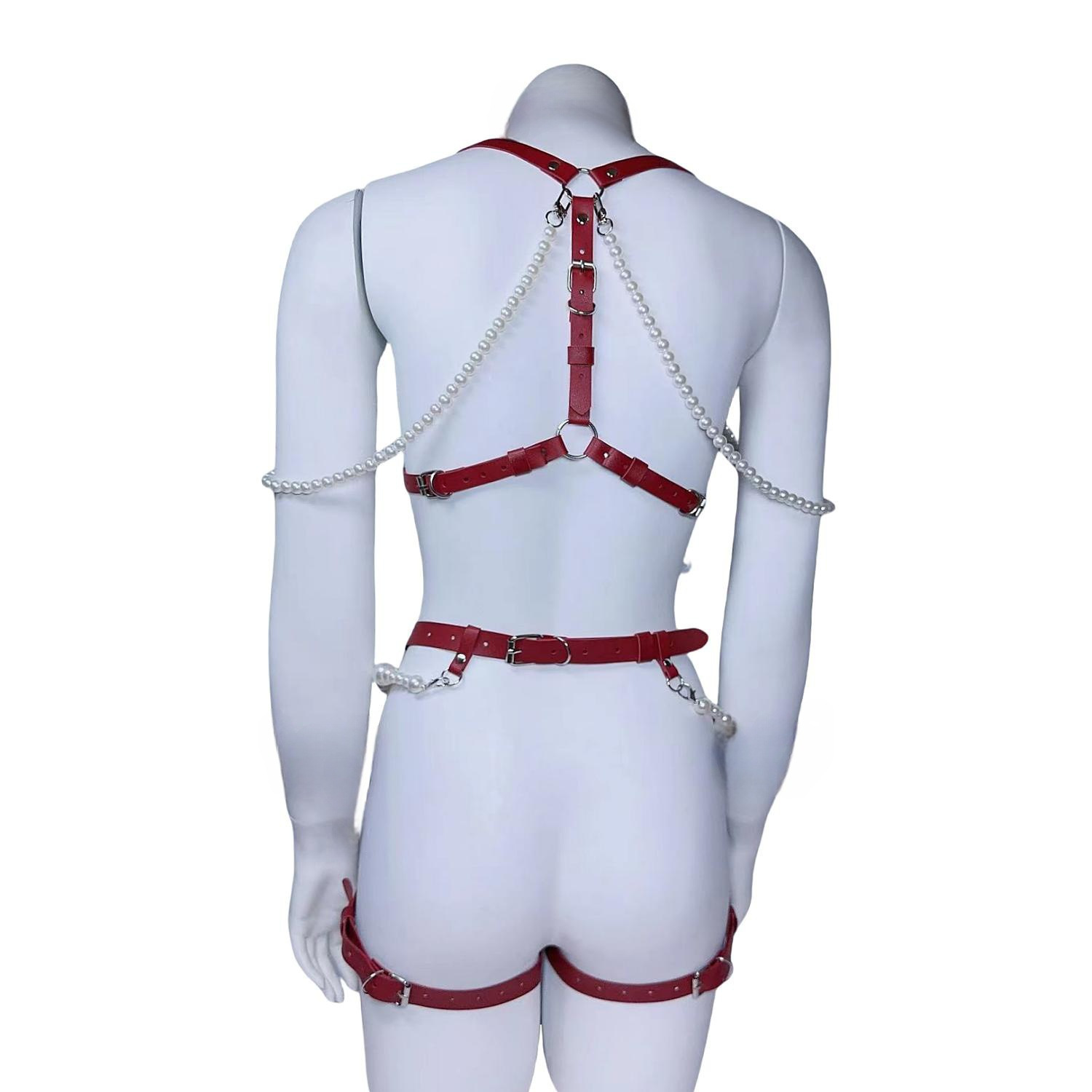 跨境热款皮质情趣套装性感珍珠纯欲皮束胸收腹束腰一体内衣束缚带
