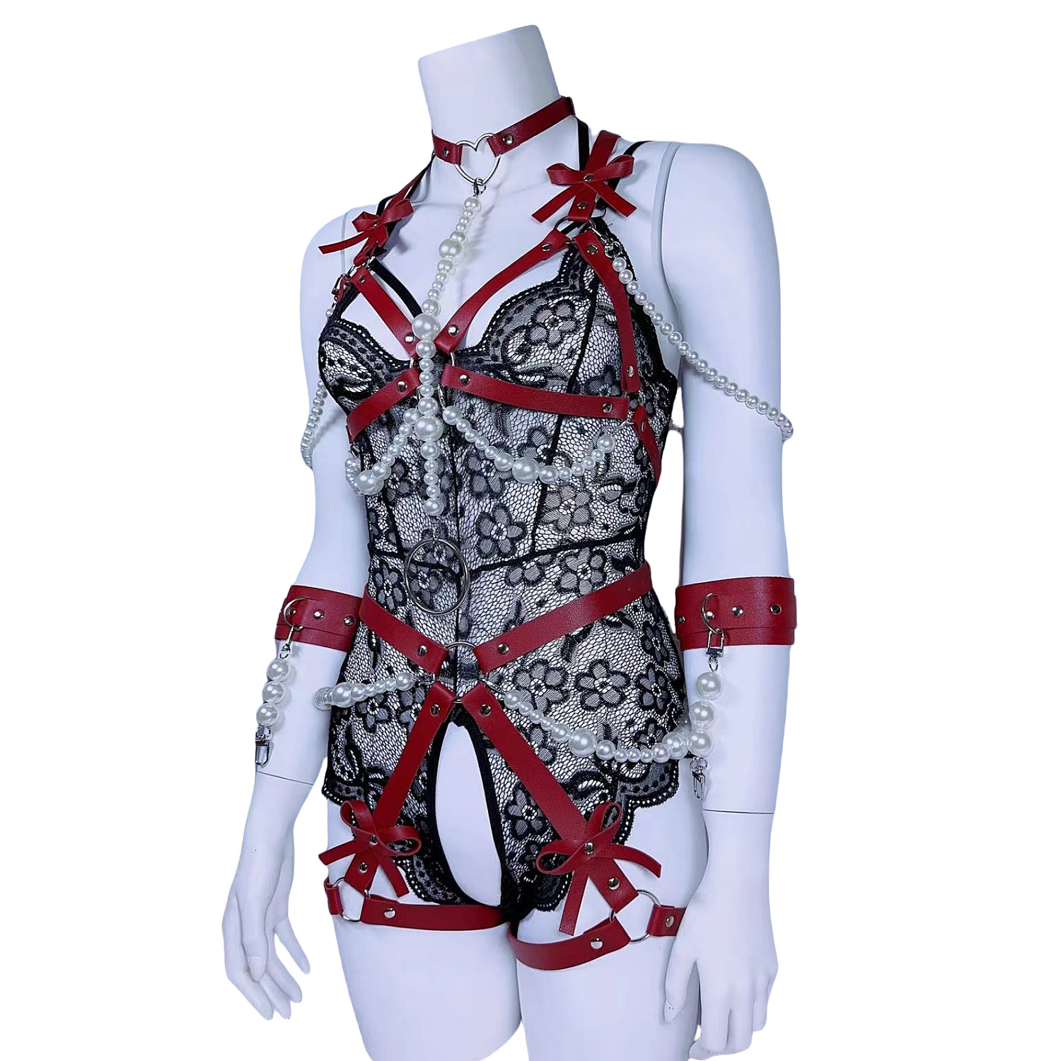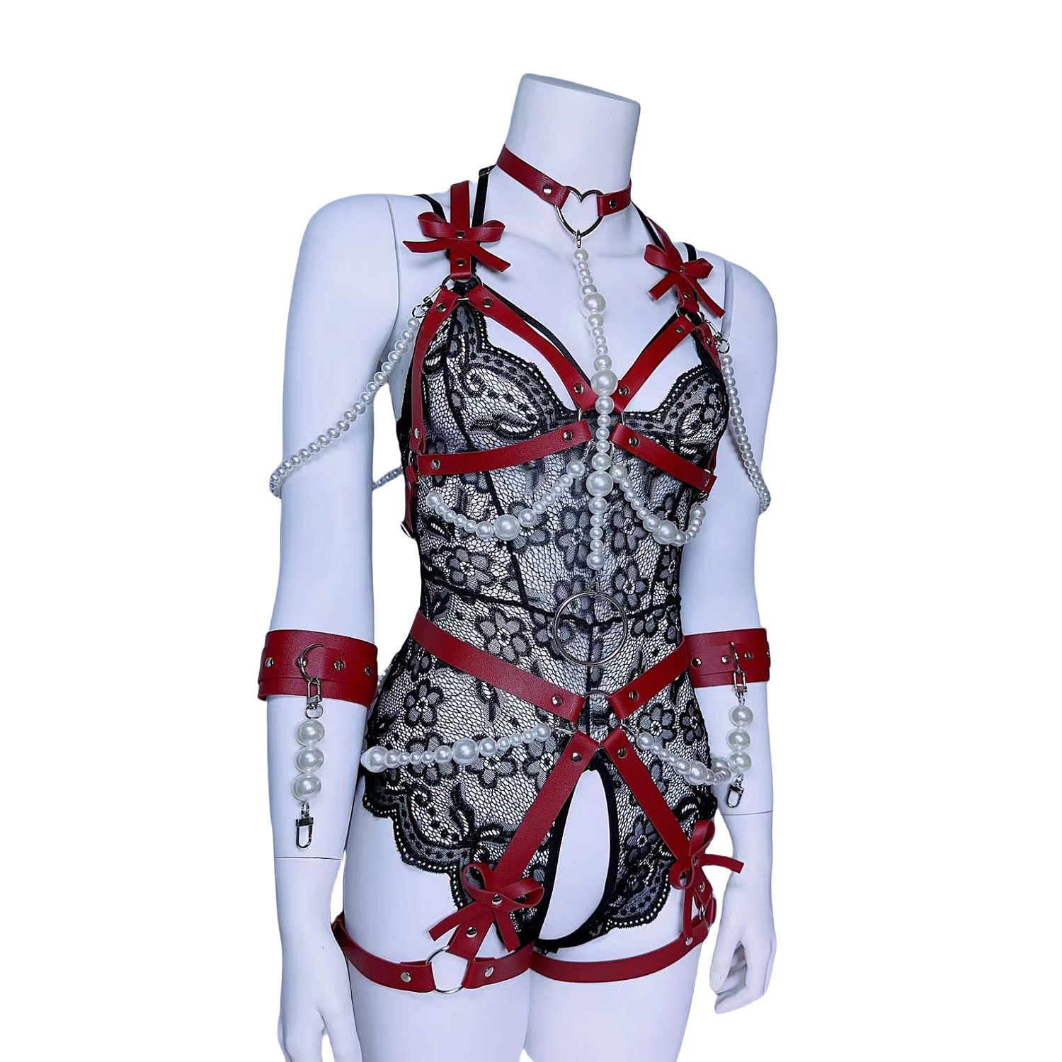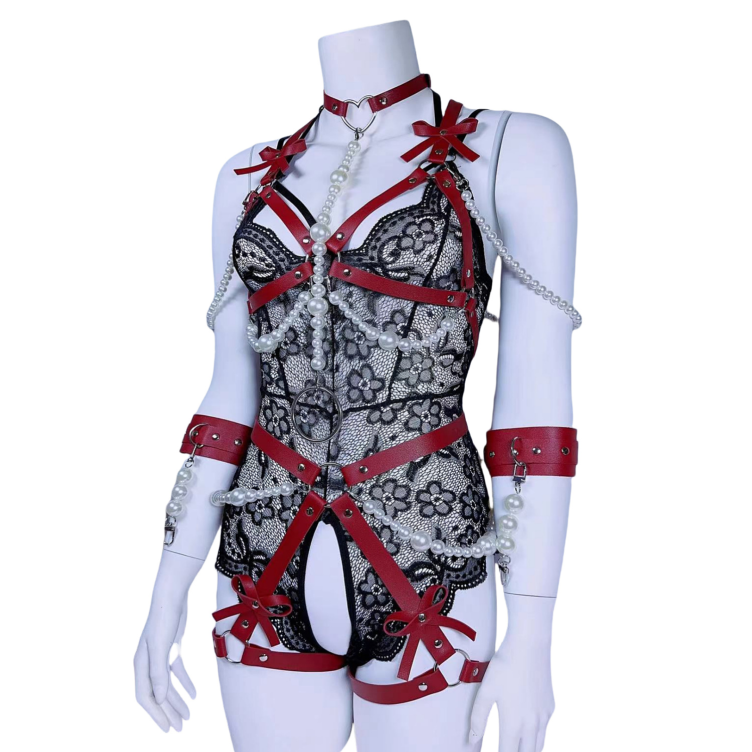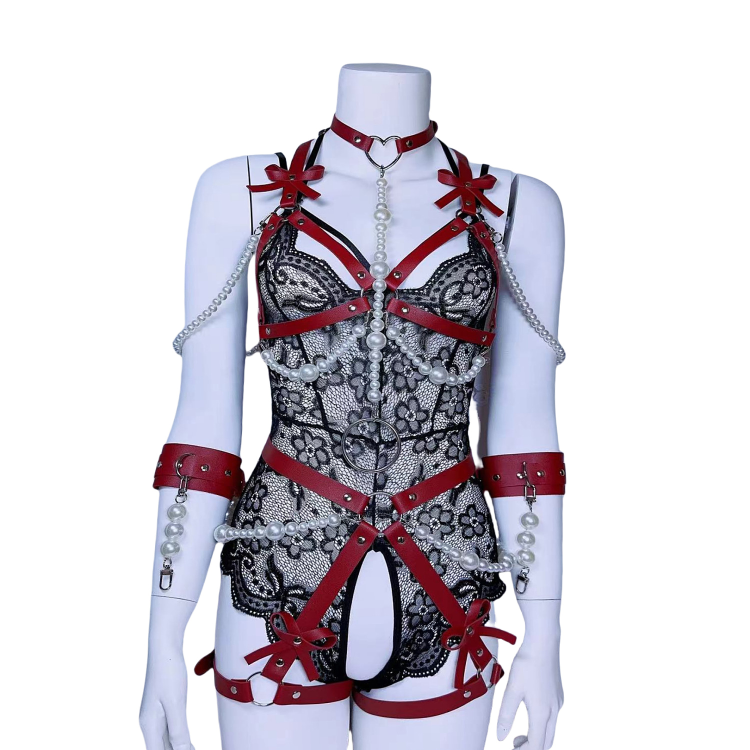 Garter belt 女士塑腰带身体绑 蝴蝶结胸带珍珠内衣牵引情趣套装