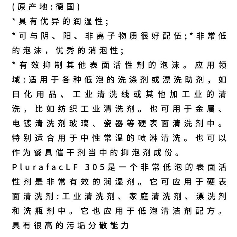 【样品】巴斯夫305原装Plurafac LF 305低泡活性剂喷淋清洗乳化剂