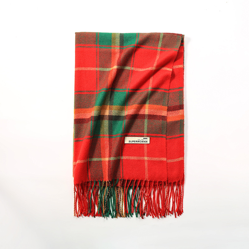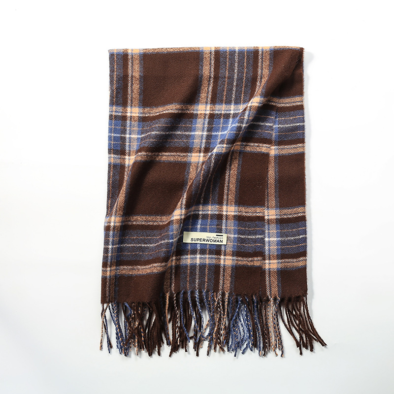 跨境韩系氛围感格子围巾女秋冬季加长仿羊绒加厚保暖披肩百搭围脖
