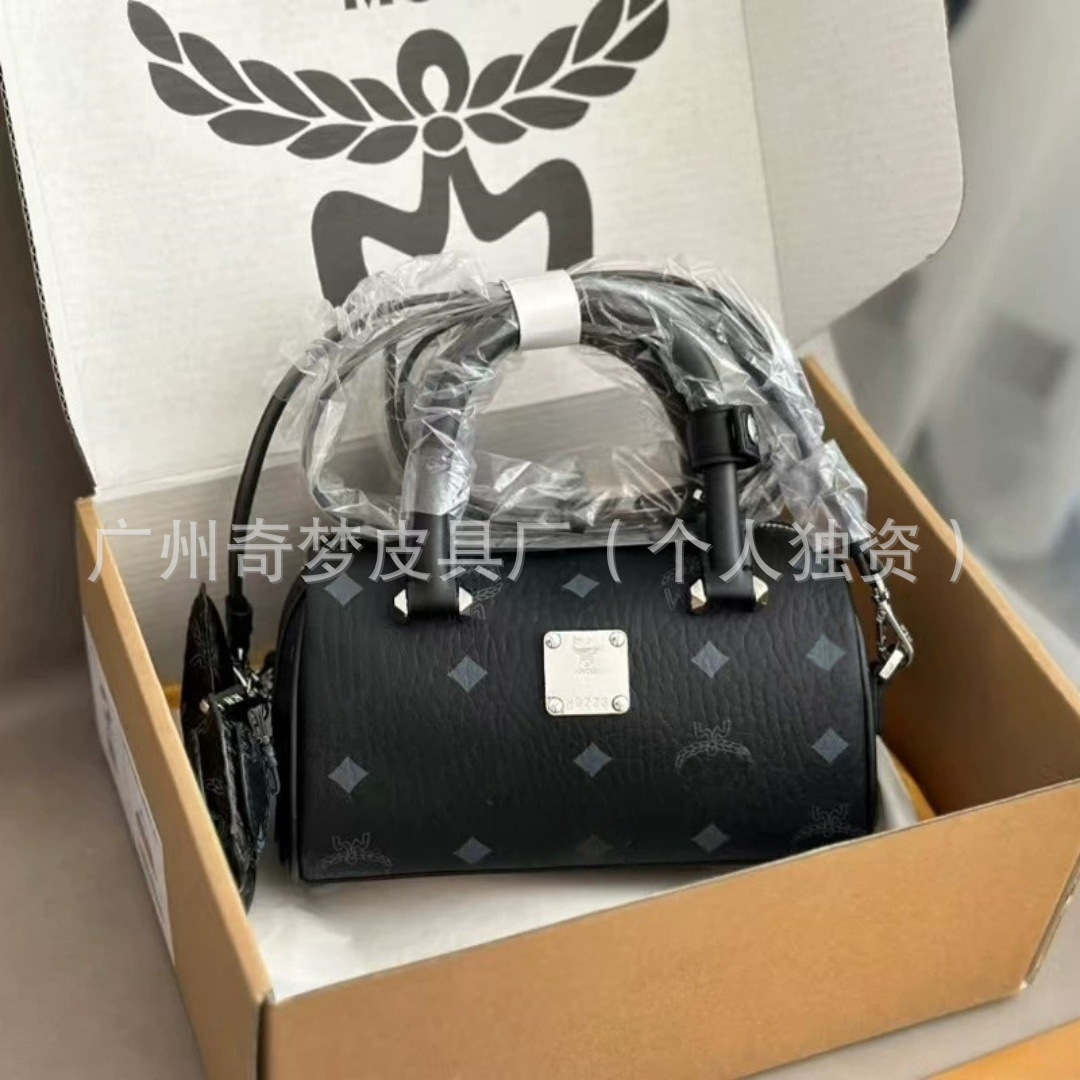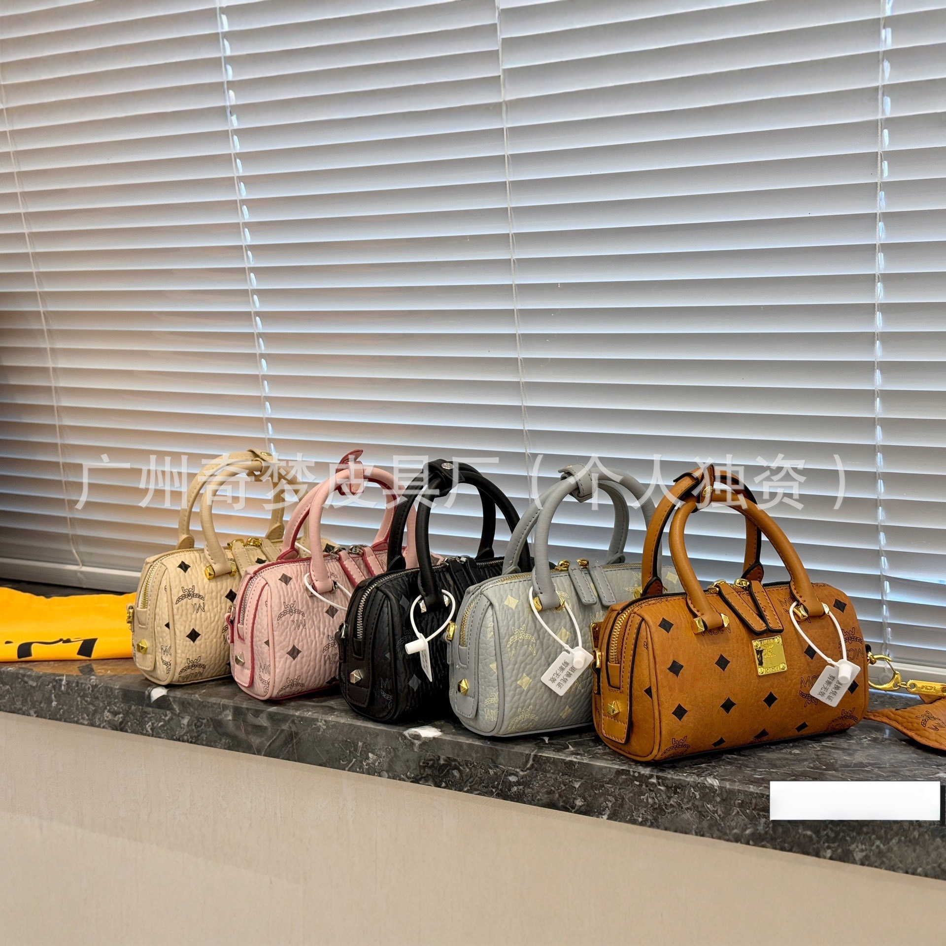 M家枕头包韩版印花字母波士顿女士手提包斜挎包大容量锁头圆筒包