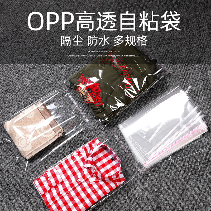 现货批发opp袋子衣服自粘袋服装包装袋透明塑料袋自黏不干胶封口