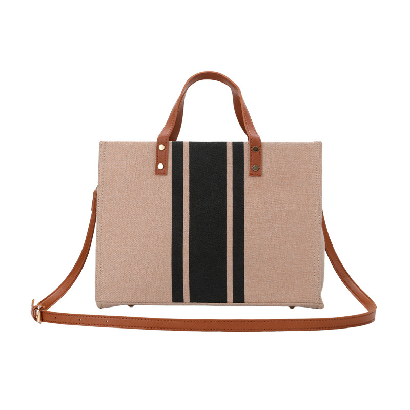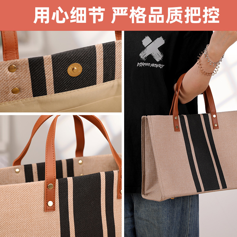 厂家批发大容量加厚帆布手提包女士拼接简约款包袋可印 logo图案
