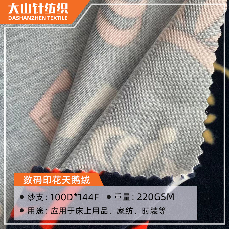 单面精细印花天鹅绒布料植绒沙发韩国弹力丝印花绒布印花法兰绒