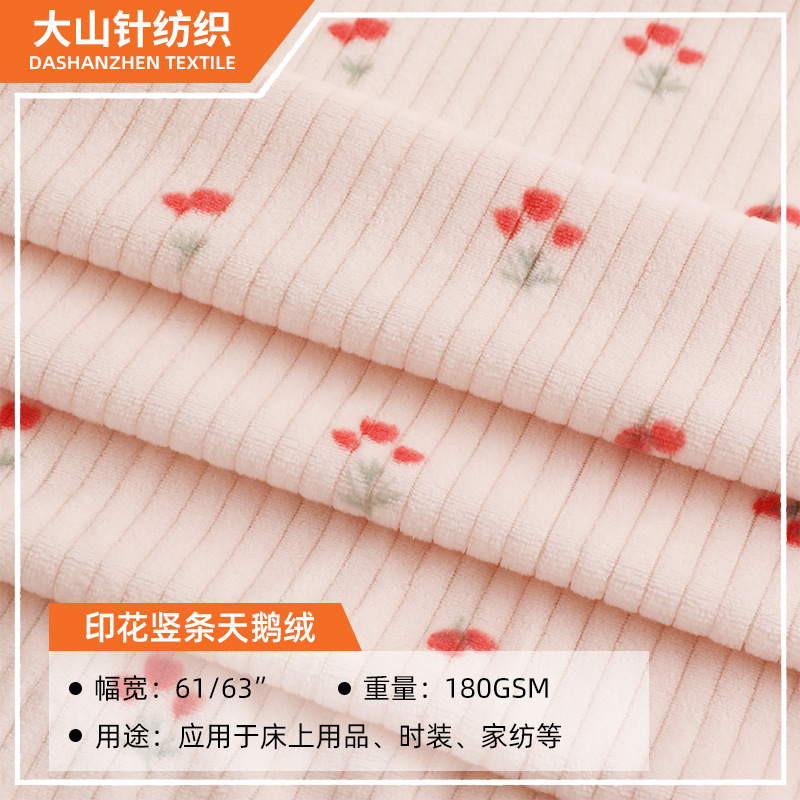 天鹅绒布面料批发印花竖条天鹅绒卫衣家居服休闲开衫服毛毯面料