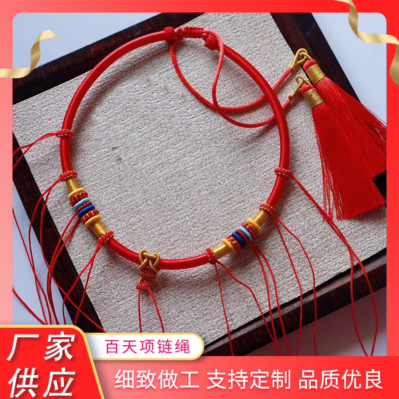 文艺复古百天项链绳细致做工宝宝项链百天满月周岁红色手工编绳