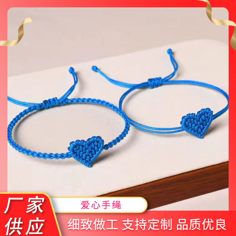 亚马逊爆款个性简约手工编爱心手绳可调节多色情侣闺蜜款手编绳